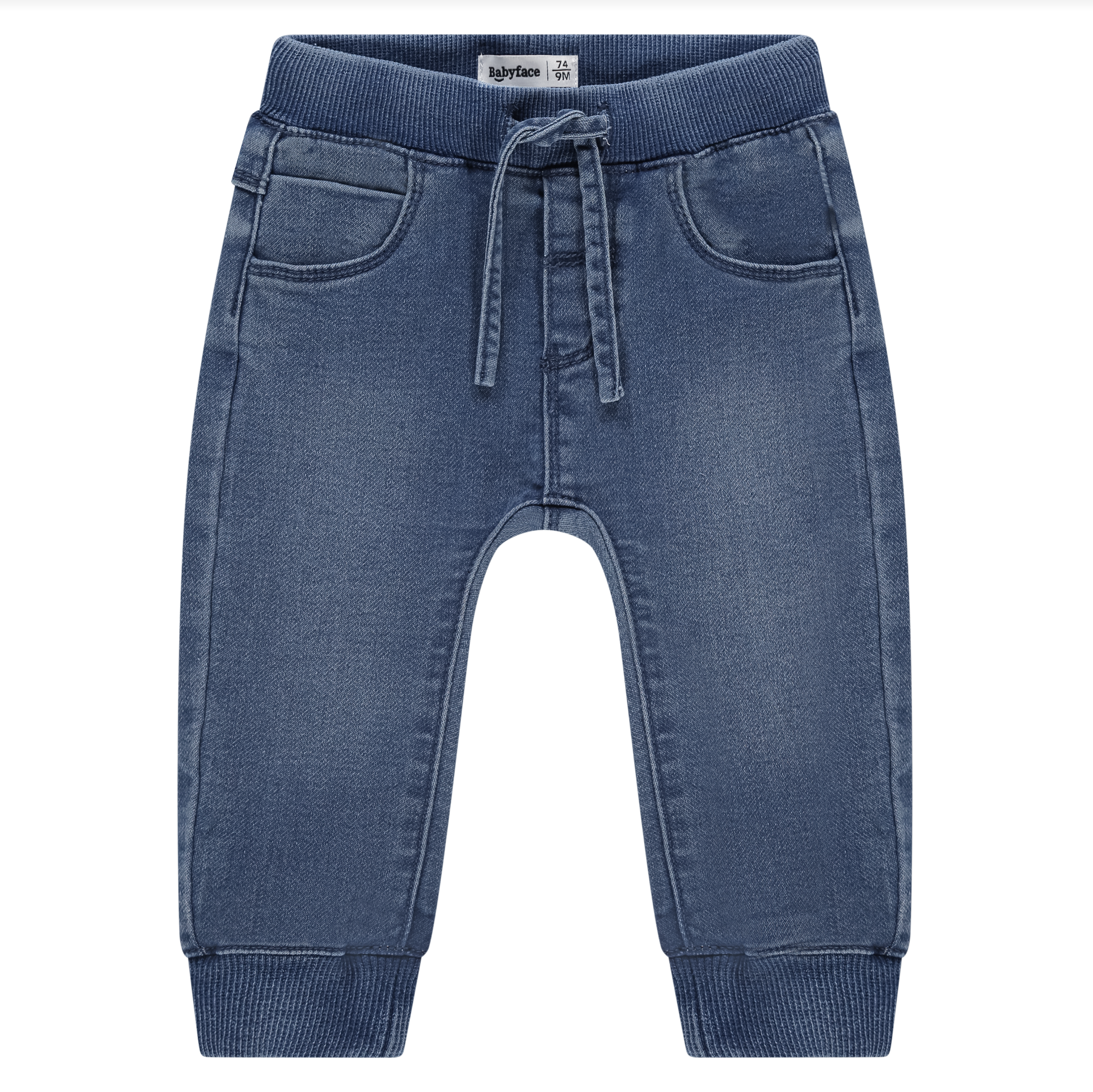 Dress your little boy in comfort and style with the Baby Boy's Jogger Denim in mid blue. These joggers combine the classic look of denim with the relaxed fit of joggers, allowing freedom of movement for active play. Made from soft, durable fabric, they offer lasting comfort while maintaining a trendy appearance. Perfect for everyday wear, these joggers easily pair with any top to keep your baby looking cool and feeling cozy.