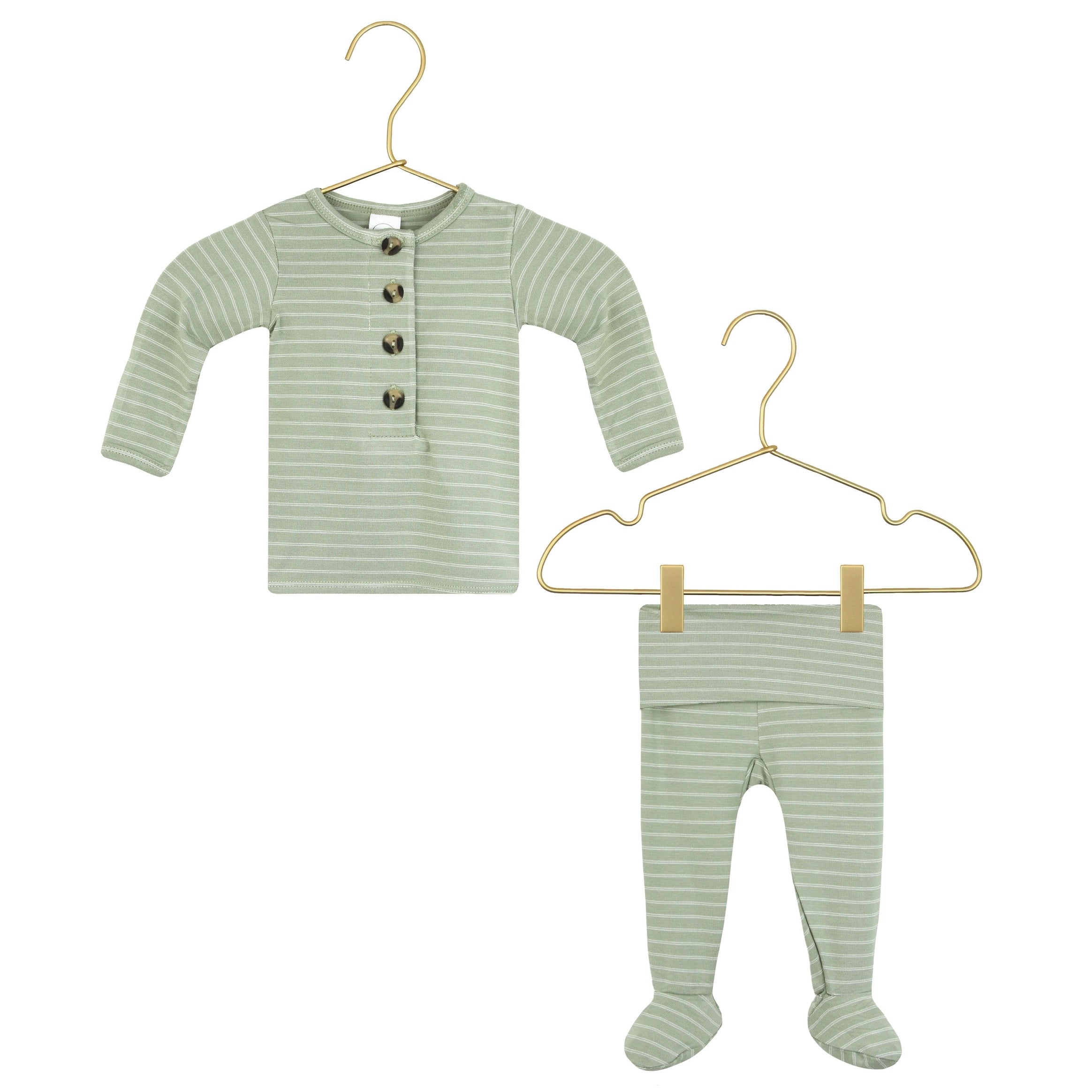 Good things come in pairs and our tops + bottoms are no exception. They’re made from our signature silky-soft material for a stretchy, comfy fit with functional buttons and fold-over waistband for room to grow (or to wear high-waisted). Say goodbye to socks that slip right off with built-in footies (on the newborn size only) to keep those tiny toes warm without the fuss. Unbelievably sweet mixing & matching approved.