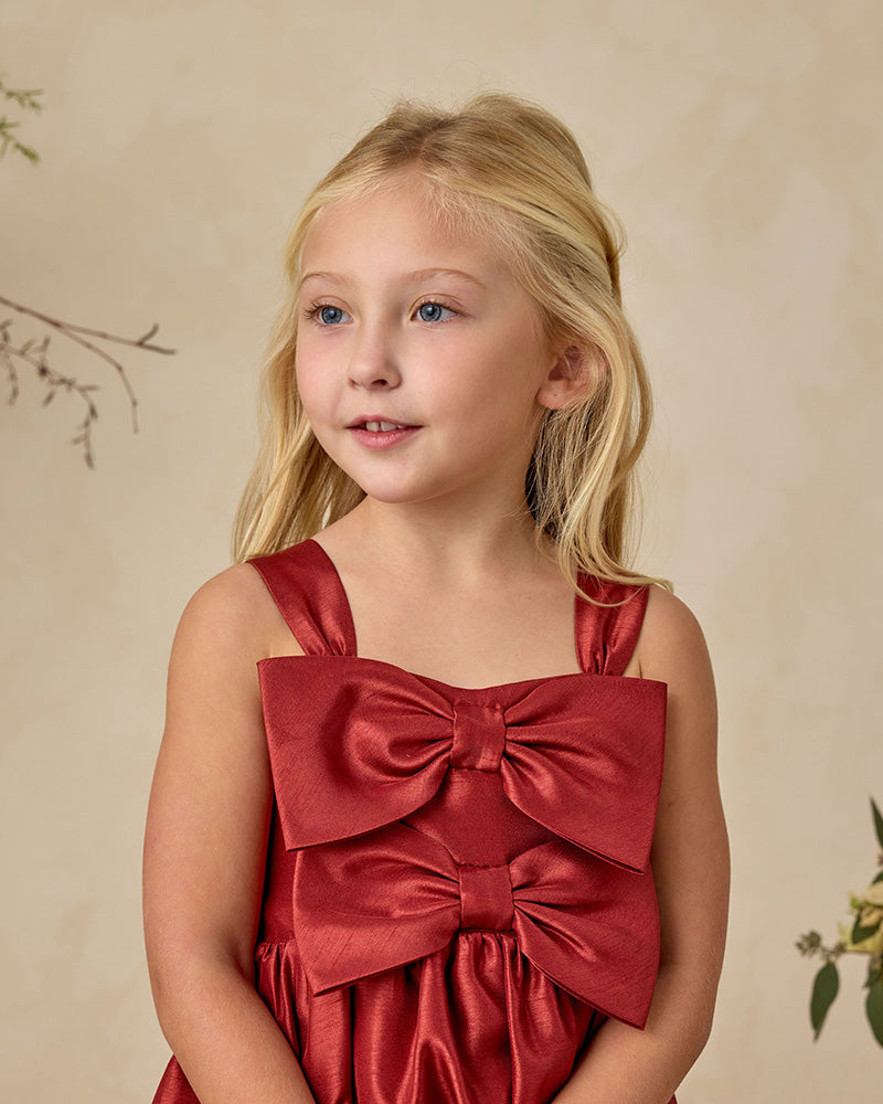 The Cindy Dress is a charming statement piece featuring a full skirt and an oversized double bow detail at the bodice. With its rich sheen and elegant silhouette, it’s designed to make every occasion feel extra special. Perfect for celebrations or memorable moments, this dress combines timeless style with playful sophistication.