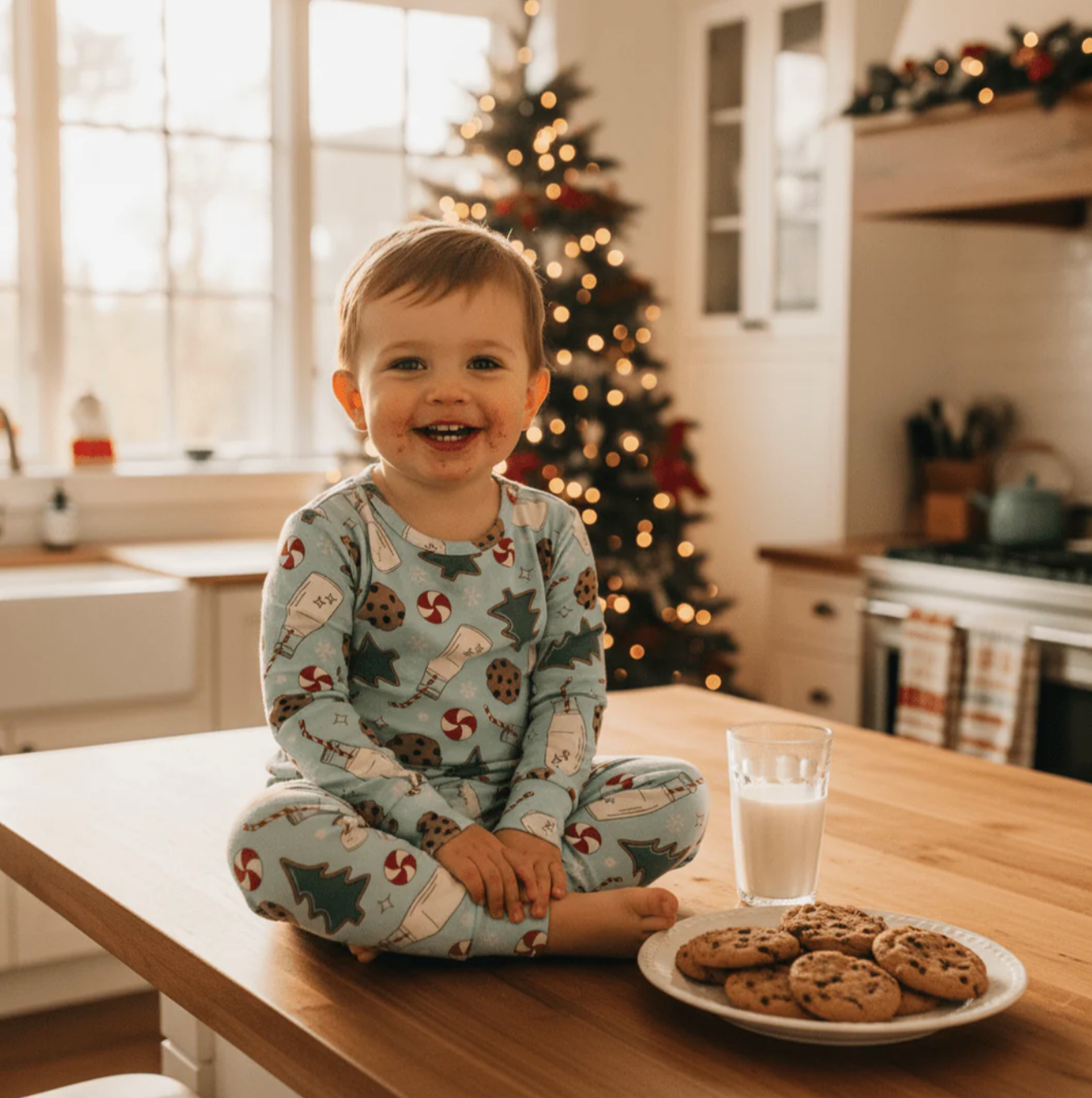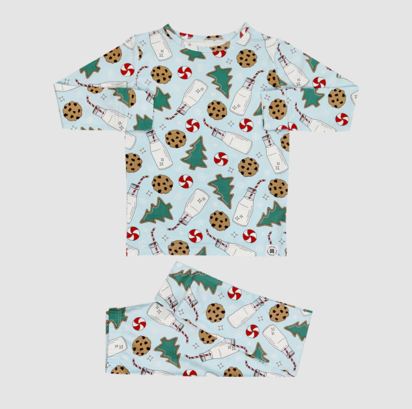 Long Sleeve Pajama Set - Santa's Cookie Blue