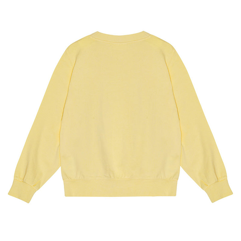 This butter yellow sweatshirt is made from organic cotton and has a round neckline and ribbed edges. The sweatshirt has an oversized fit, which provides a relaxed and comfortable feel. On the front is a sequin bow.