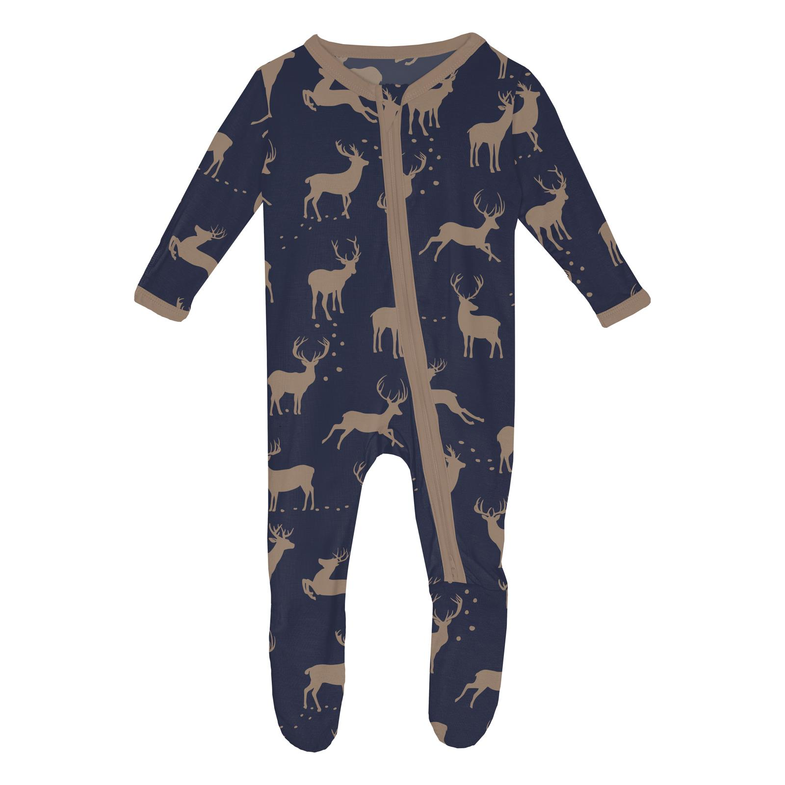 Print Footie with 2 Way Zipper - Peacoat Elk