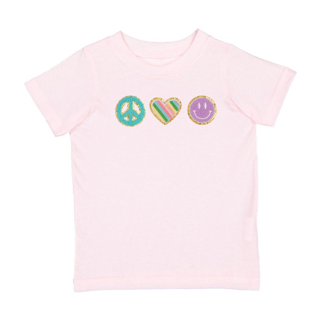 Peace, Love, Smile Patch Short Sleeve T-Shirt - Ballet