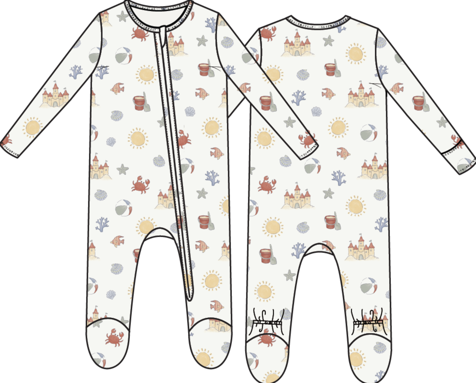 2 Way Zipper Footie - Farm Animals Rope Cameo Uni