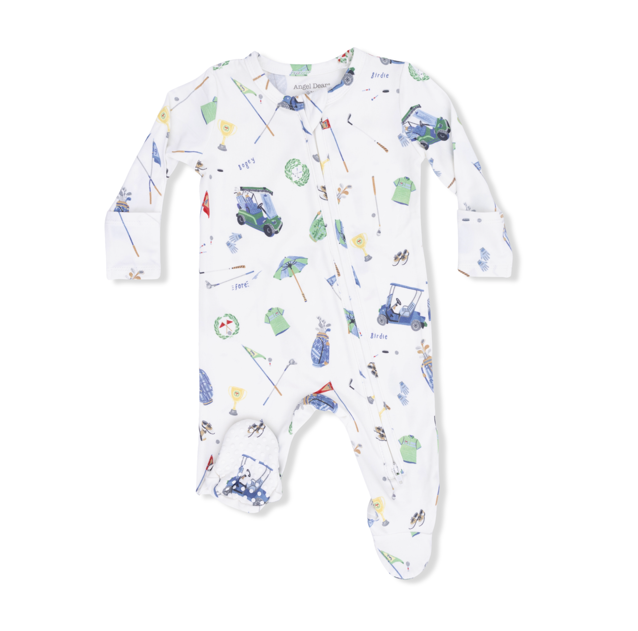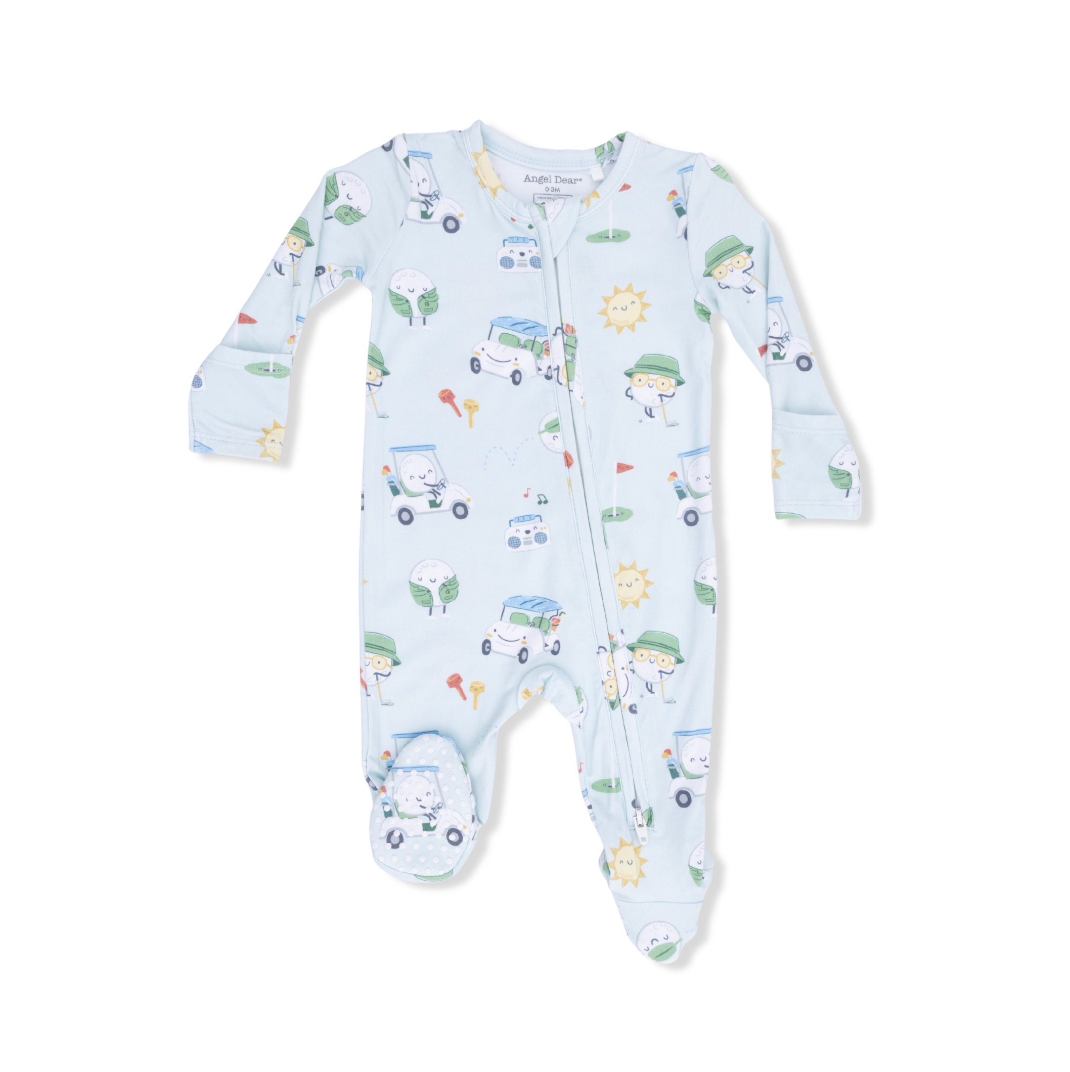 2 Way Zipper Footie - Vintage Golf Carts Blue
