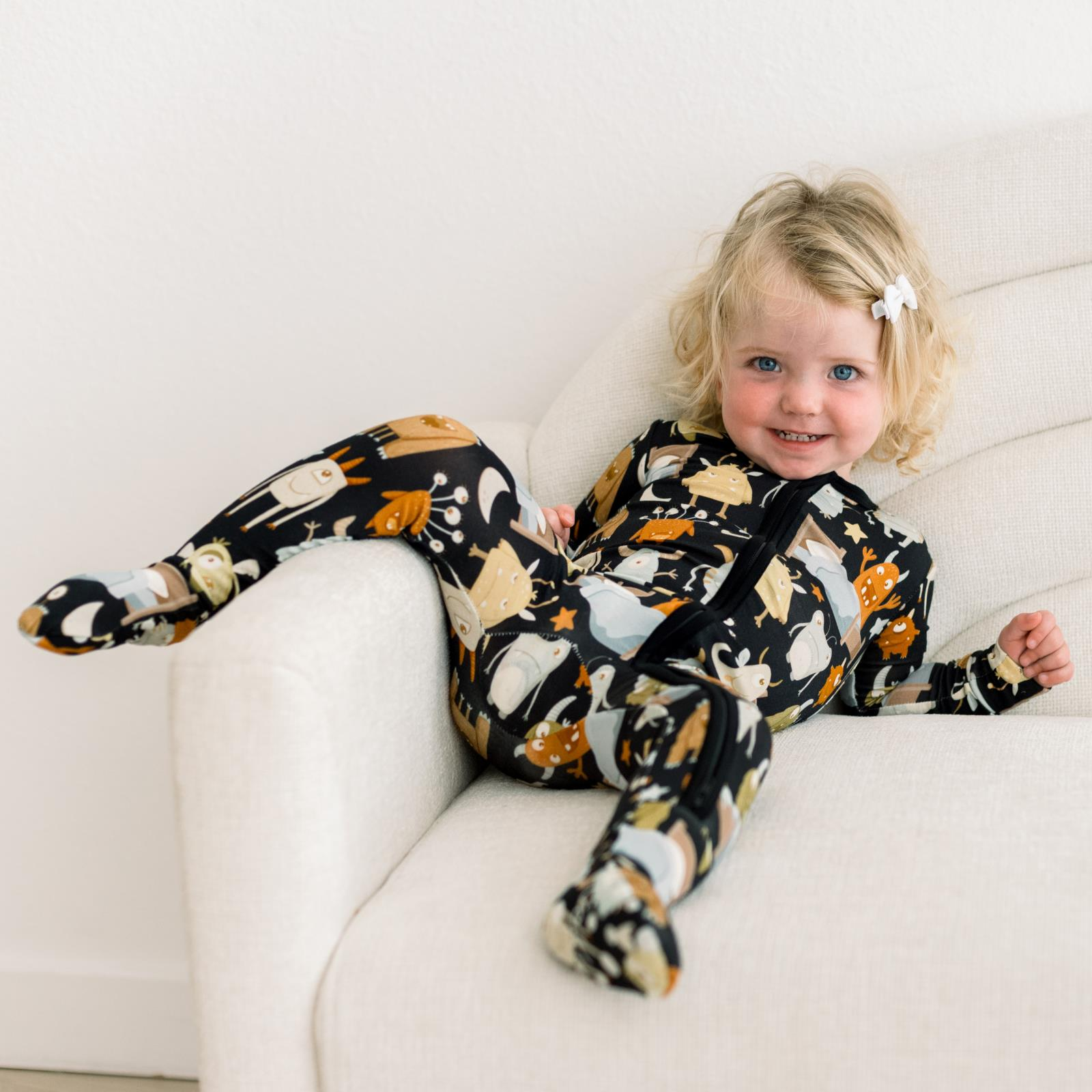 Print Footie with 2 Way Zipper - Midnight Monsters Under the Bed