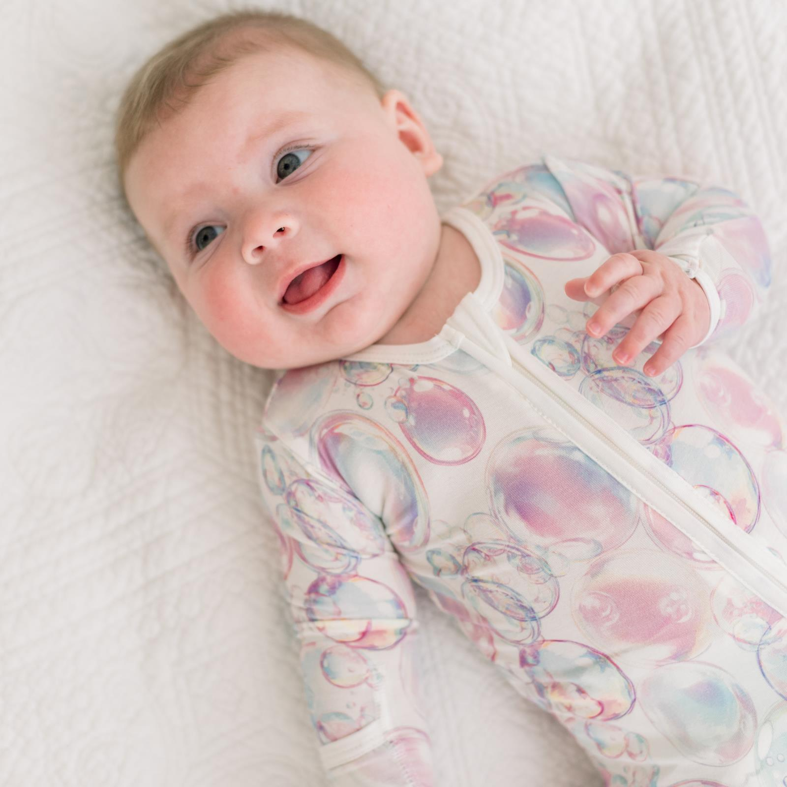 Print Footie with 2 Way Zipper - Natural Bubbles