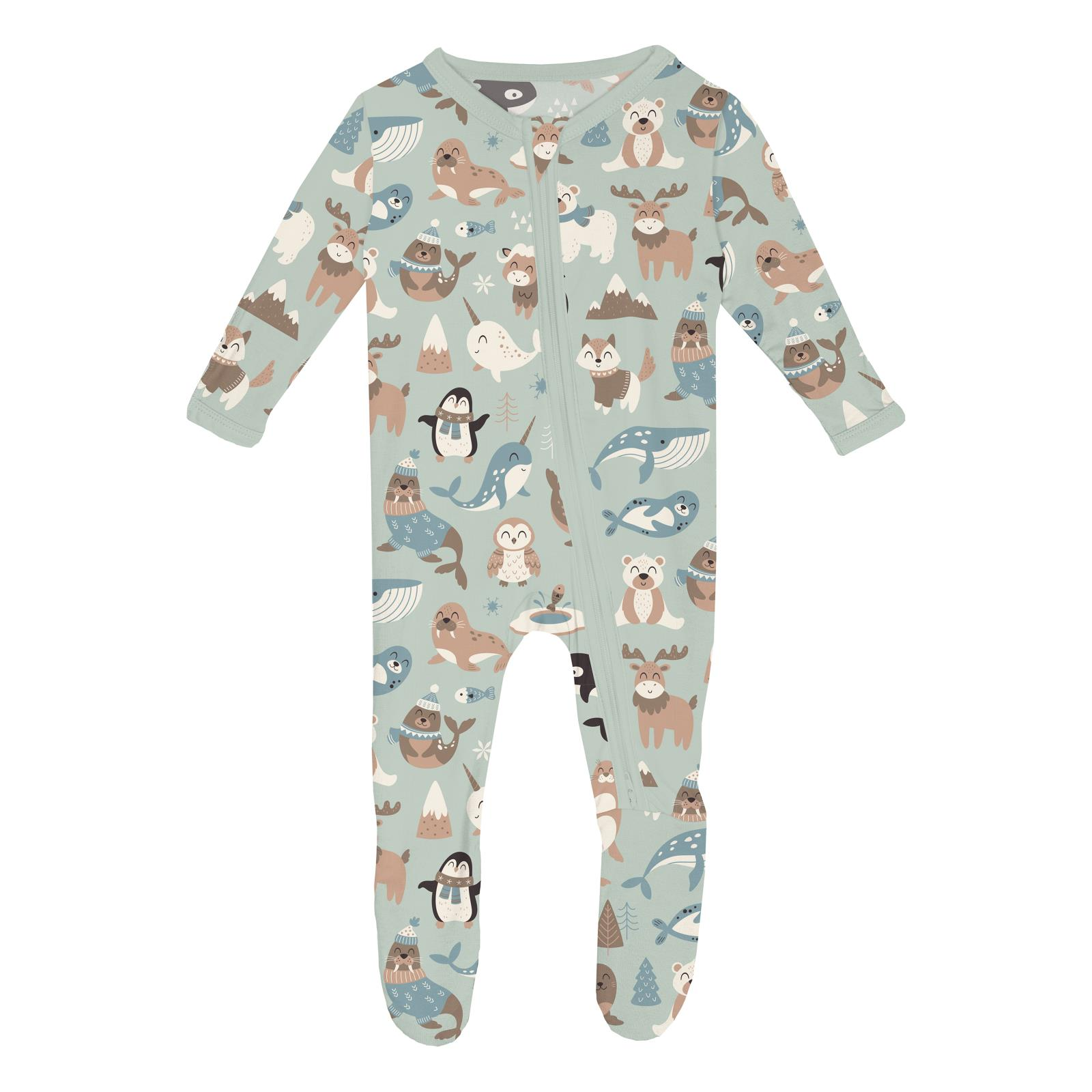 Print Footie with 2 Way Zipper - Aloe Arctic Animals