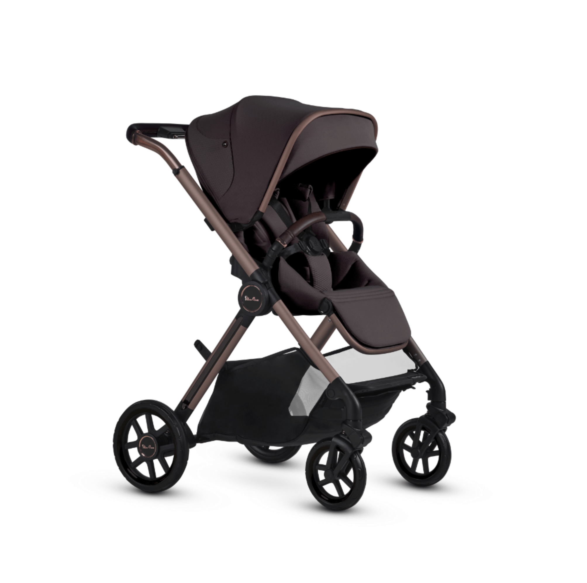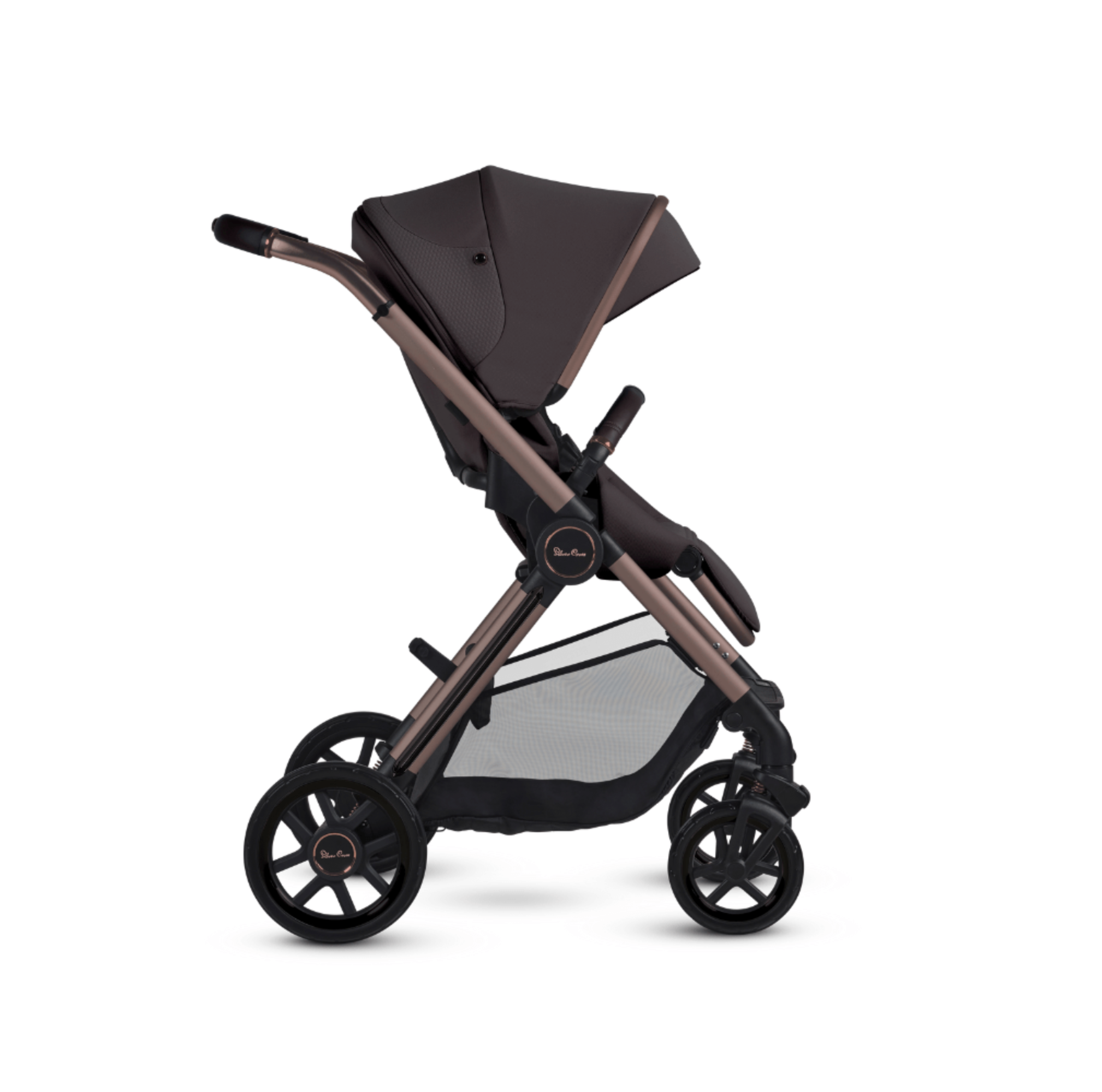 Why parents will love it: The revolutionary one-seat solution converts into five different modes, allowing your child to ride reclined, rear-facing, forward-facing or converted to a travel system with car-seat adapters (sold separately). Goldtone accents on the wheels appeal to your stylish side, while the large puncture-proof tires and all-wheel suspension handle more rugged terrain with ease. A state-of-the-art no-rethread harness system and Genius™ buckle provide added protection and peace of mind. A large, easy-to-access basket under the seat holds up to 22 pounds and the seat fabric is made with yarn from recycled plastic bottles.