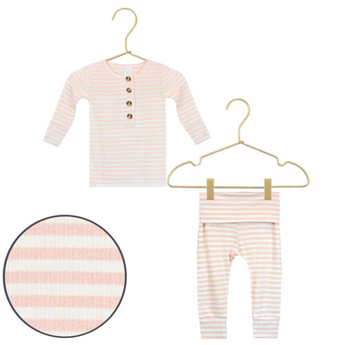 Good things come in pairs and our tops + bottoms are no exception. They’re made from our signature silky-soft material for a stretchy, comfy fit with functional buttons and fold-over waistband for room to grow (or to wear high-waisted). Say goodbye to socks that slip right off with built-in footies (on the newborn size only) to keep those tiny toes warm without the fuss. Unbelievably sweet mixing & matching approved.