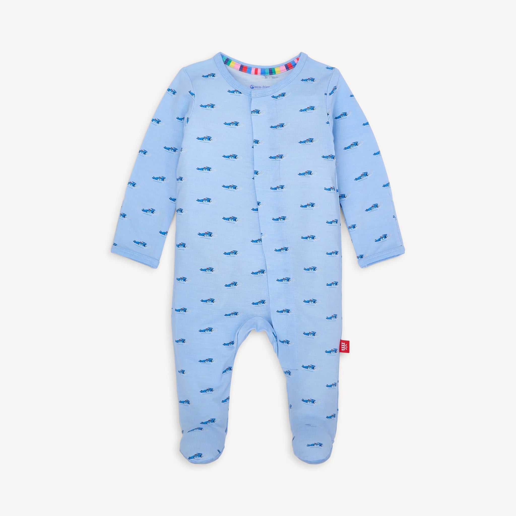 A soft, stylish all-day and all-night wardrobe staple with smart magnetic fasteners that makes changing time painless. With our no over-the-head design, simply open the outfit, insert baby, and BOOM, DONE! - the footie practically closes itself. Machine wash as directed