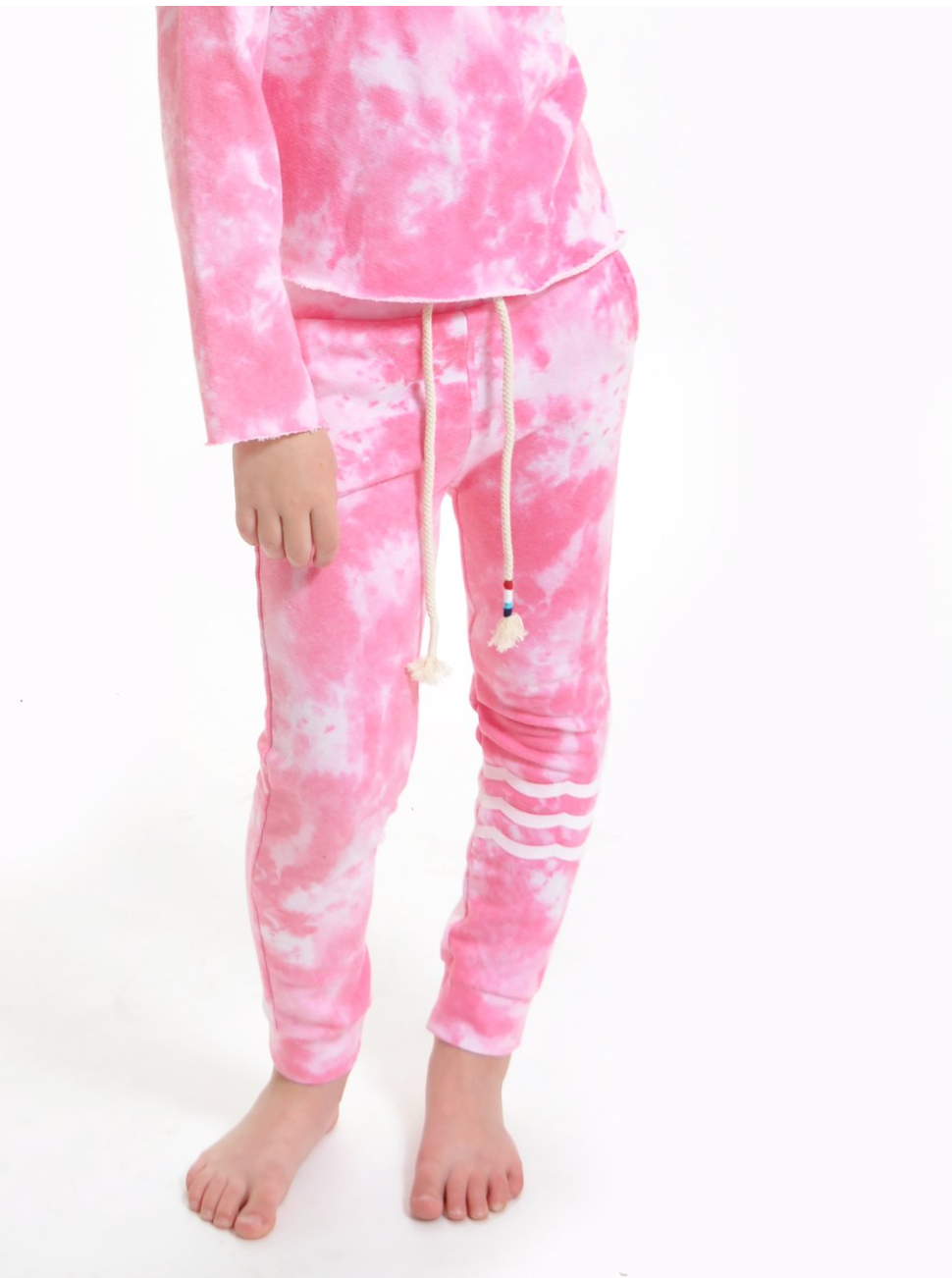 Pretty in marbled pink! Bright pink hues, printed on our joggers with two side pockets, our signature Sol Flag drawcord, and our classic white Waves.