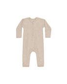 Long sleeve baby jumpsuit in our stretchy ribbed melange knit, designed with snaps along the front and inseam for easy, comfortable wear.