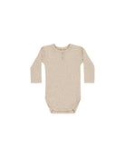 Our Henley Long Sleeve Bodysuit, made from our ribbed melange knit, features a two-button placket at the center front and bottom snaps for easy changes. Pair with our Ribbed Leggings to complete your little one's look.