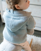 Waffle Knit Hooded Cardigan - Pearl Blue
