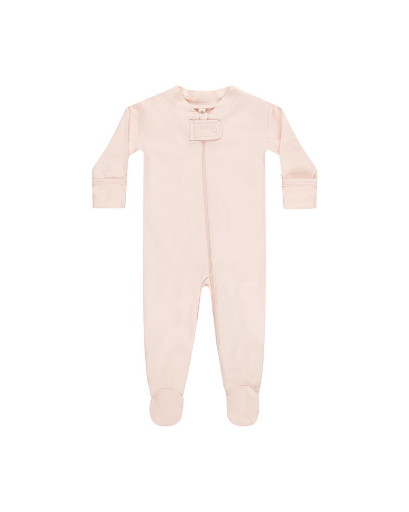 Our cozy Footie Sleeper, made from our soft organic cotton jersey, features a two-way zipper for easy changes with fold-over mitts included in sizes PR - 3-6M to prevent scratches and keep little hands warm, and rubber dots for on the soles of sizes 6-12M - 12-18M for your little walkers.