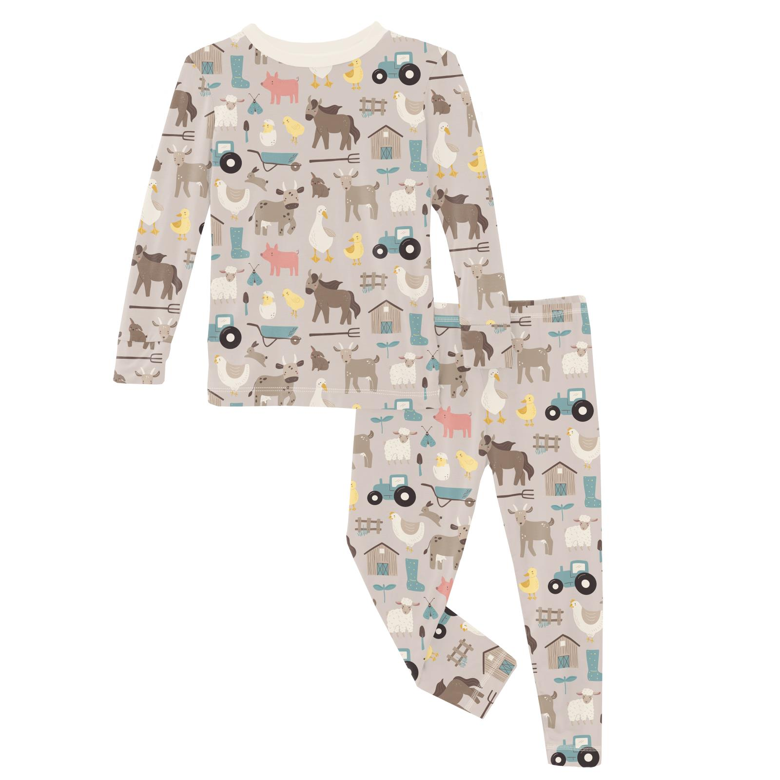 Print Long Sleeve Pajama Set - Latte Morning on the Farm