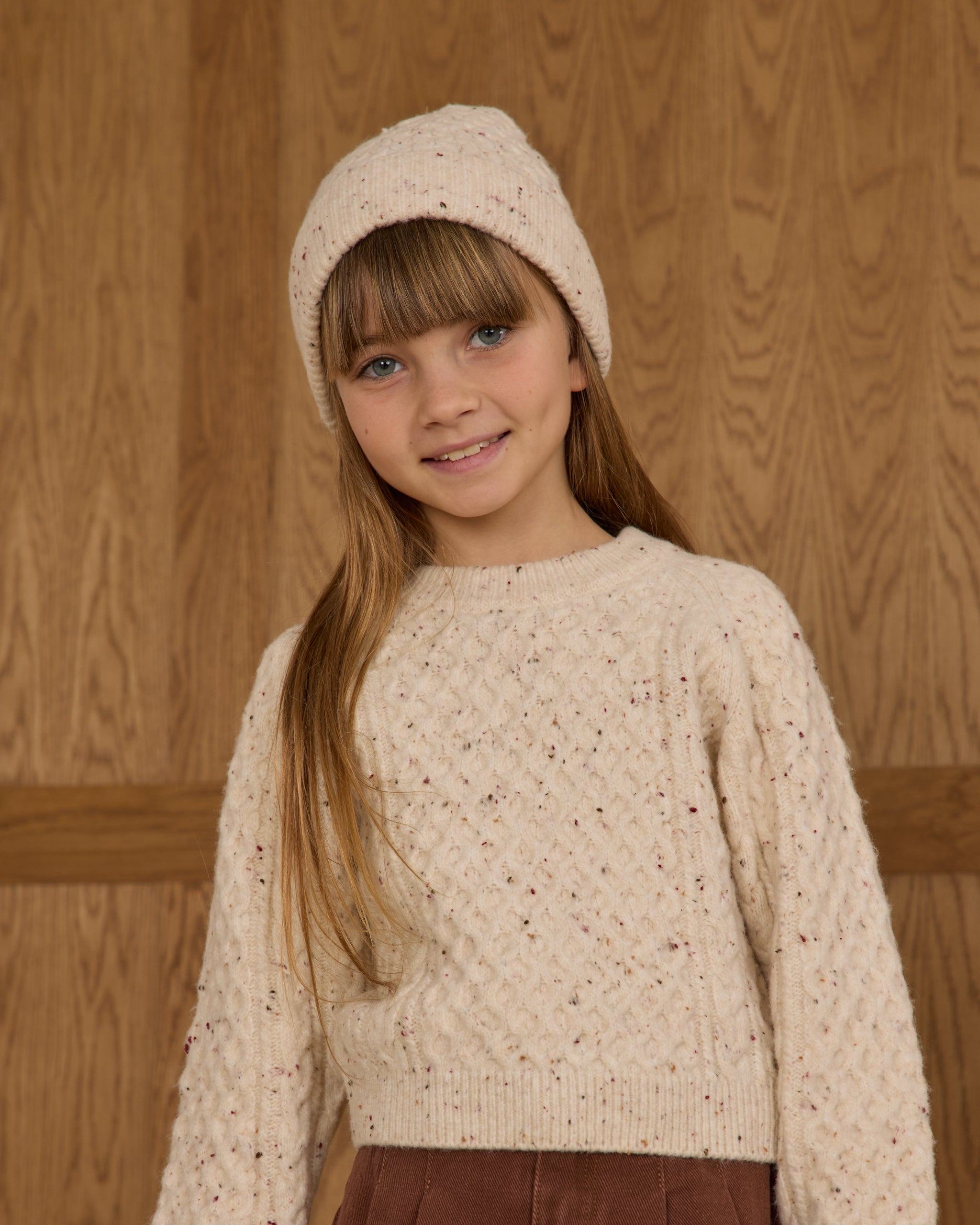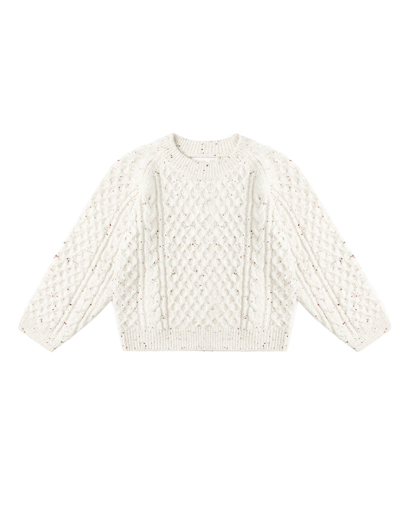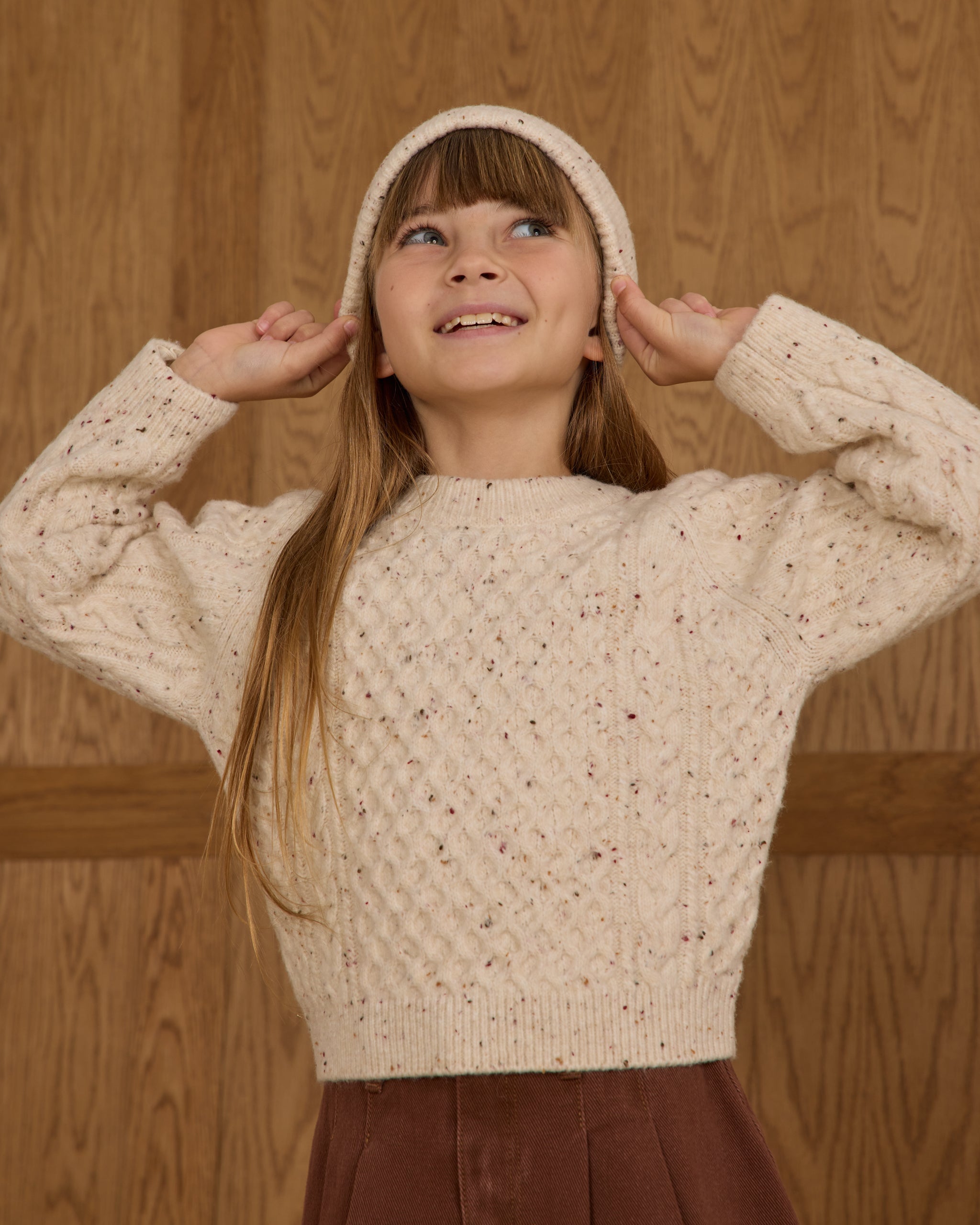 This cozy honeycomb Cable Knit Sweater with raglan sleeves is a refined layer for cooler weather.