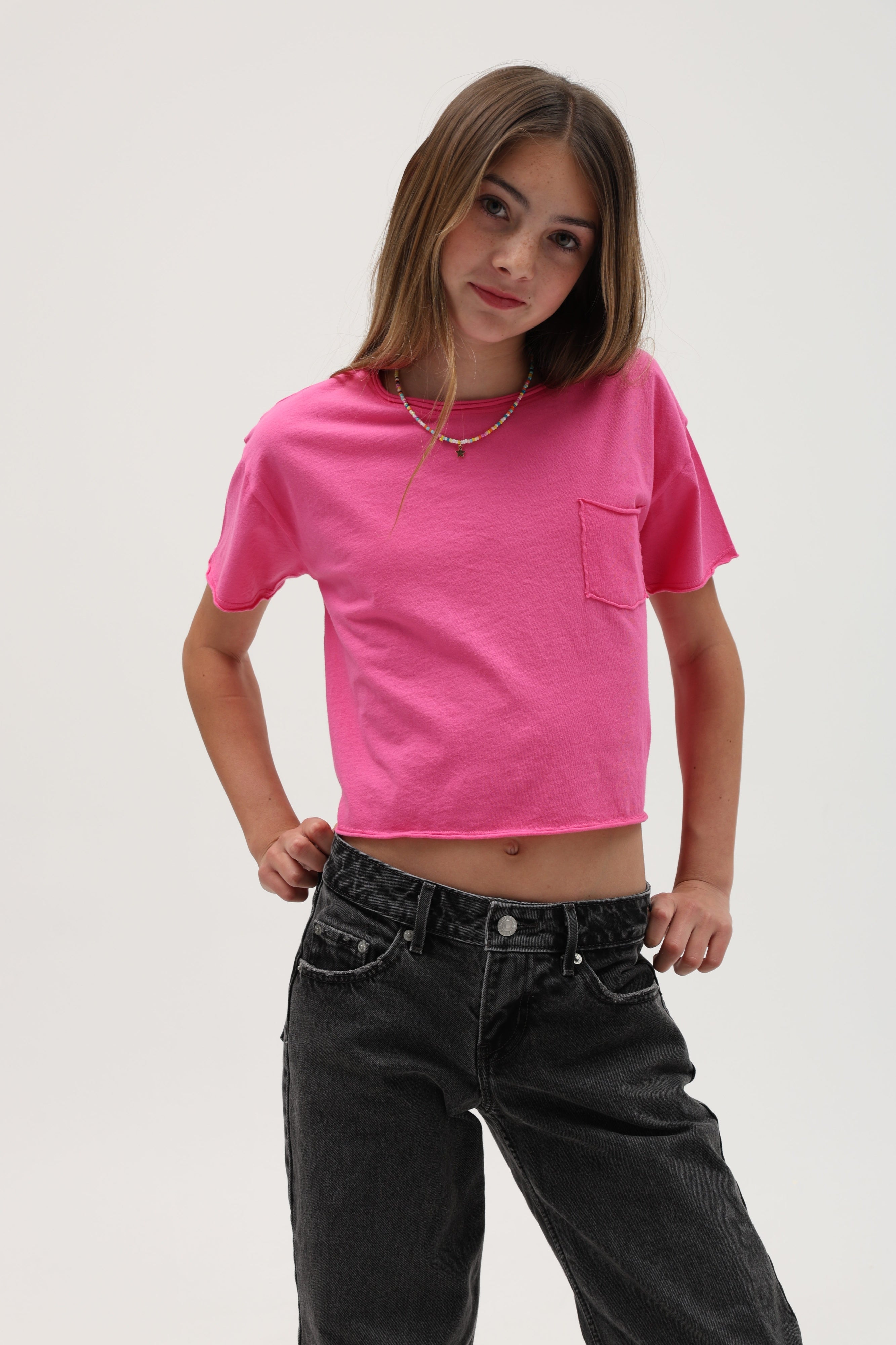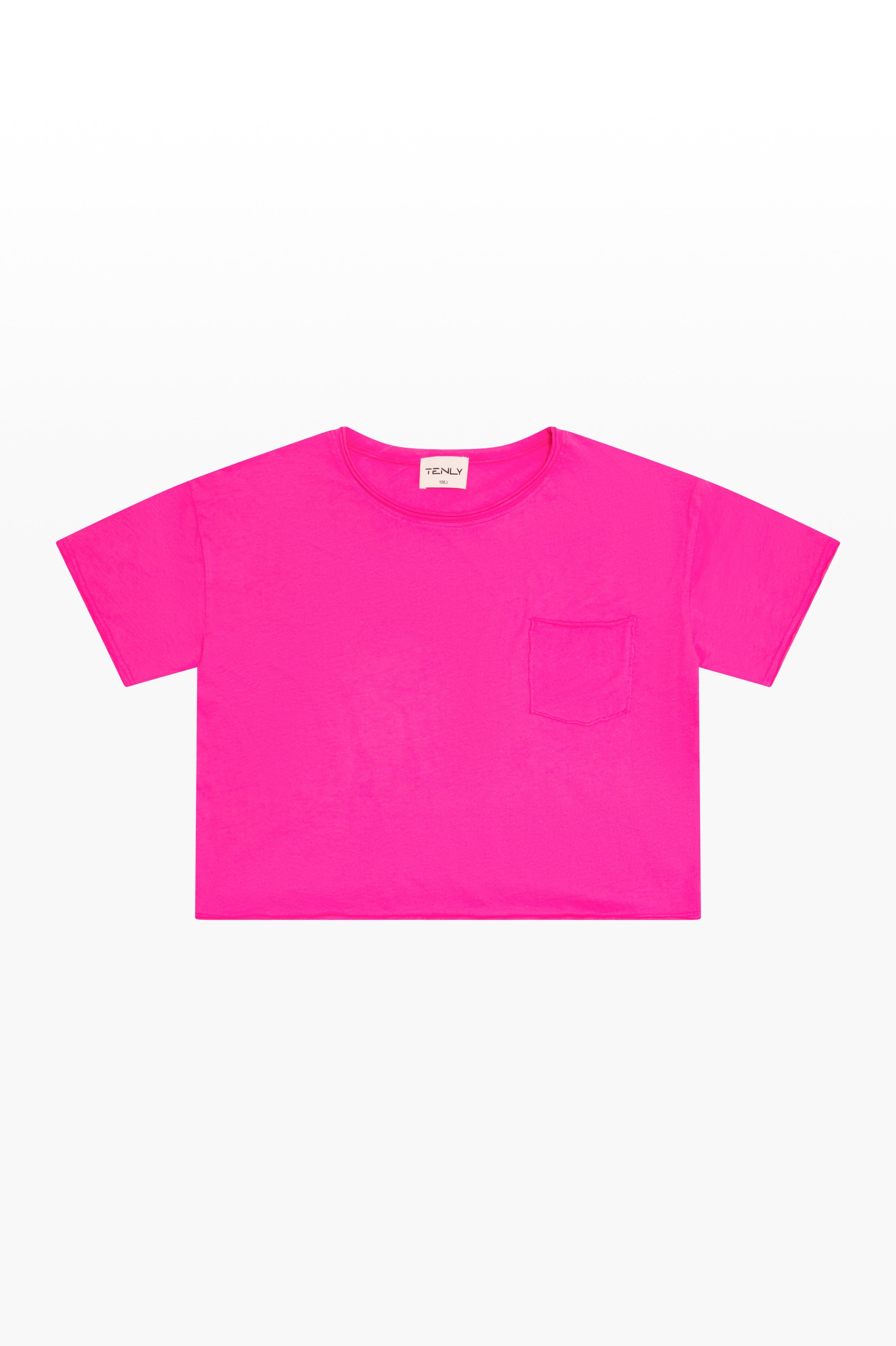 Cotton Jersey Raw Edge Pocket Tee - Cerise