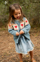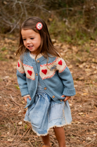 - Adorable overall dress featuring charming handmade patches