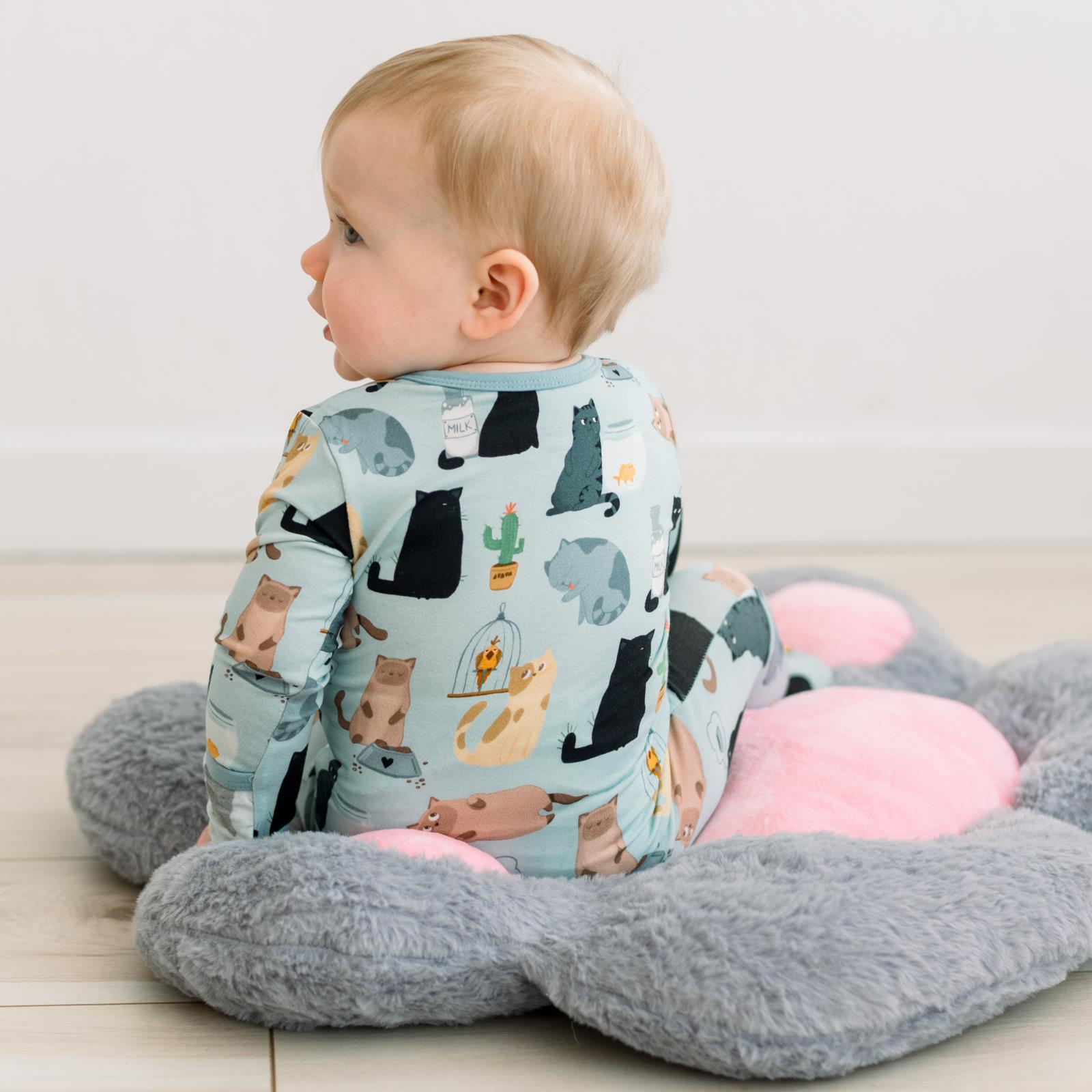 Print Footie with 2 Way Zipper - Spring Sky House Cat