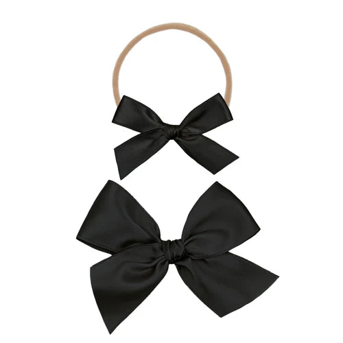 Dress your little one up with our satin bows! Handmade by local moms from high-quality satin. This is the perfect bow for your darling little girl! Each bow is hand tied and is attached to a nylon headband. All bows are secured so they do not come undone!