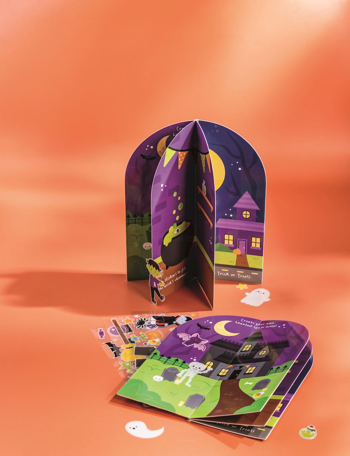 Fun for little imaginations -- fill book's reusable glossy scenes with glow-in-the-dark stickers. Folds into dimensional shape with magnetic closure. Comes in display crate. Ages 3+.