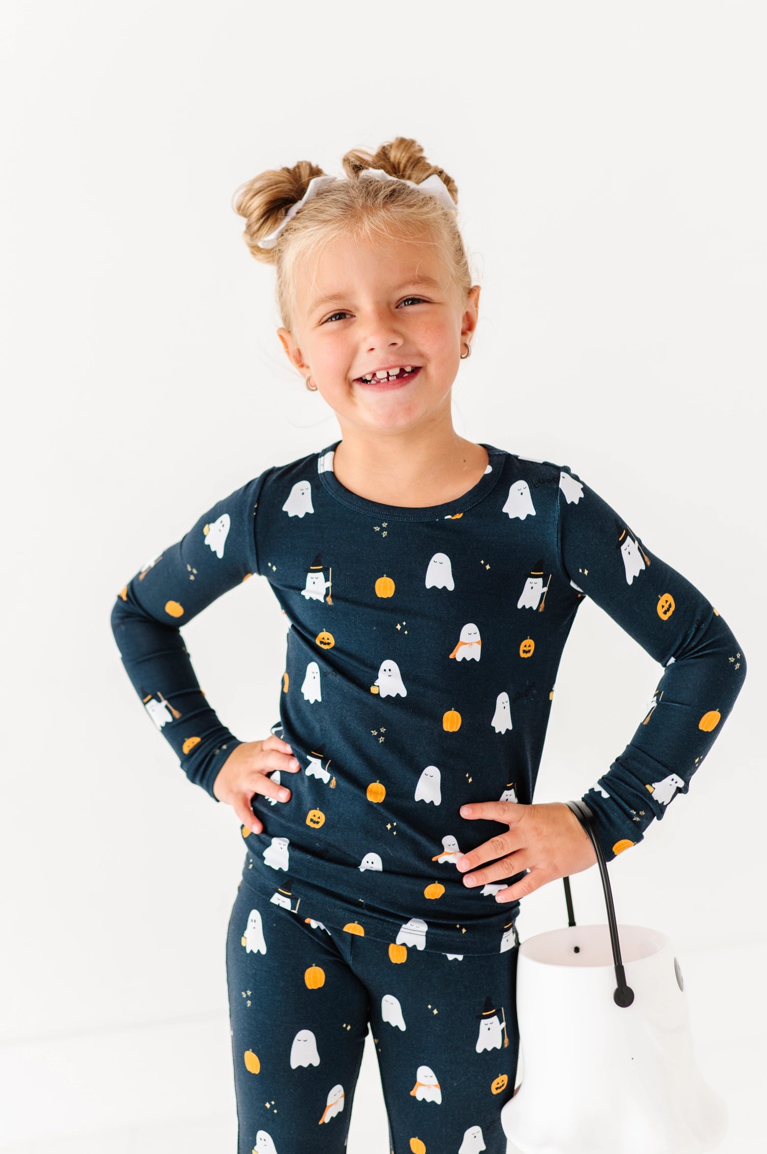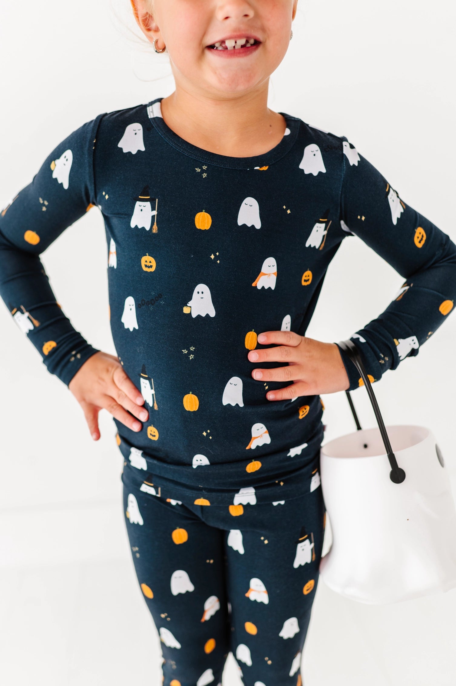 Print Long Sleeve Pajama Set - Halloween Charcoal