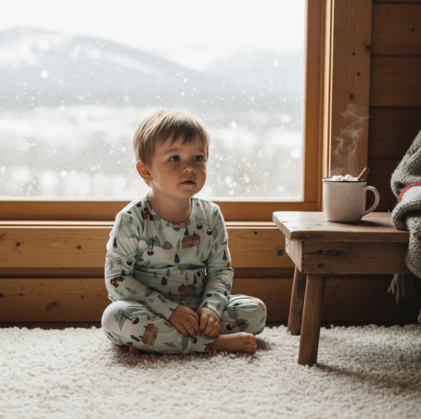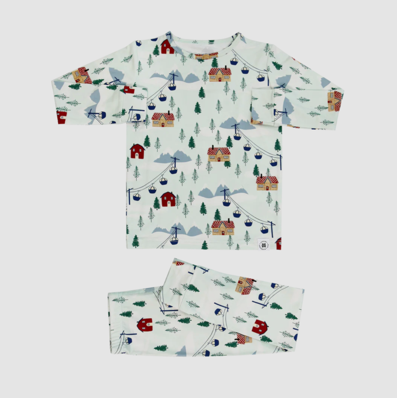 Print Long Sleeve Pajama Set - Spring Sky Winter Wonderland