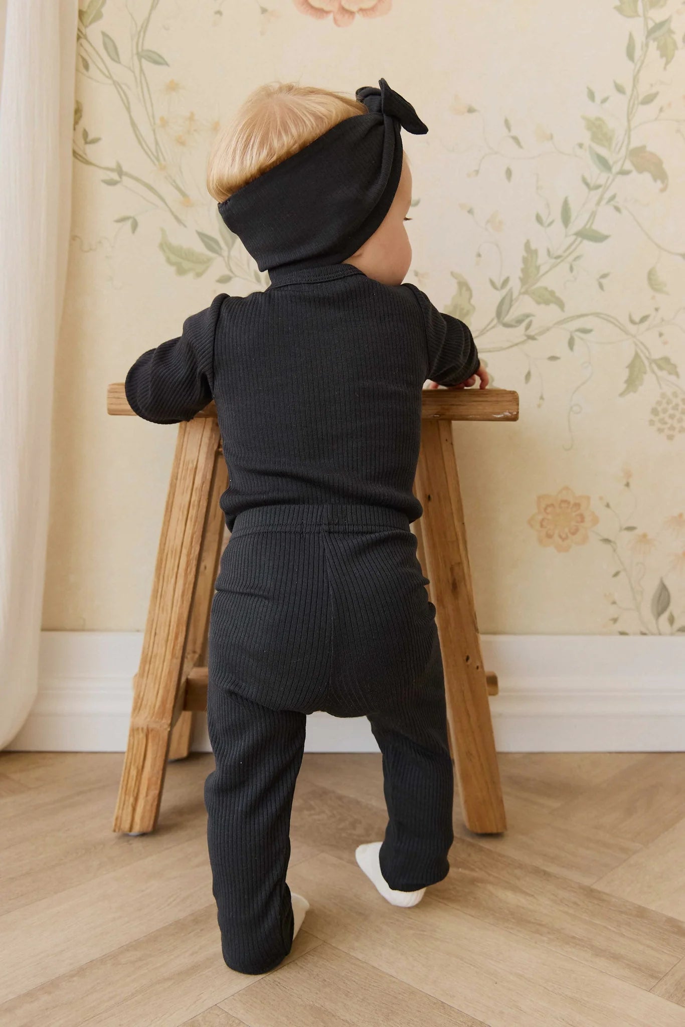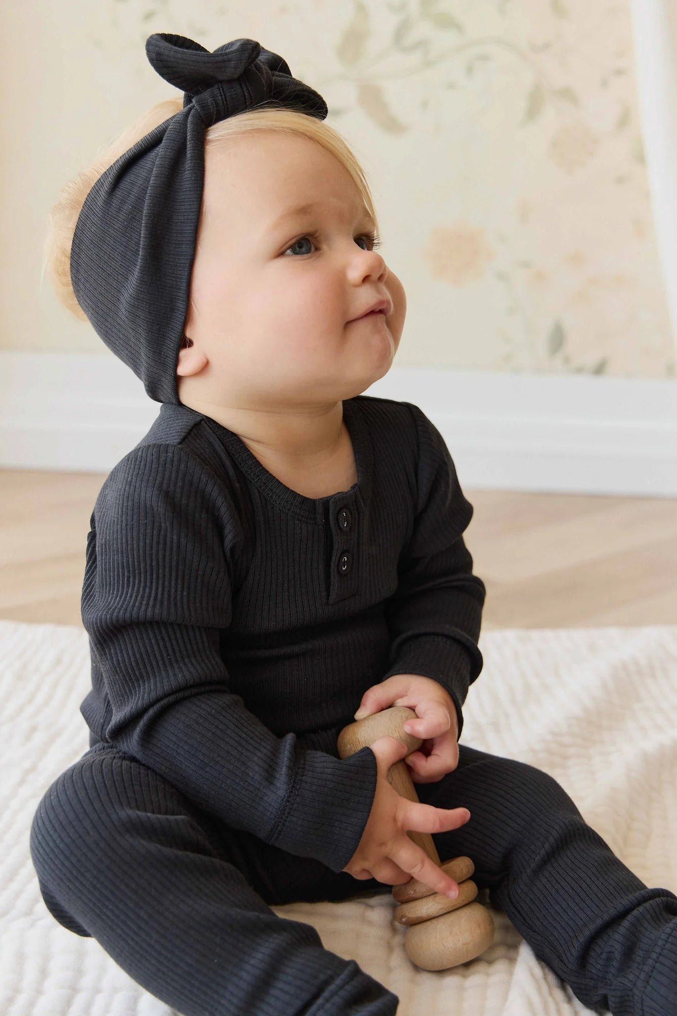 Organic Cotton Modal Long Sleeve Bodysuit - Ebony