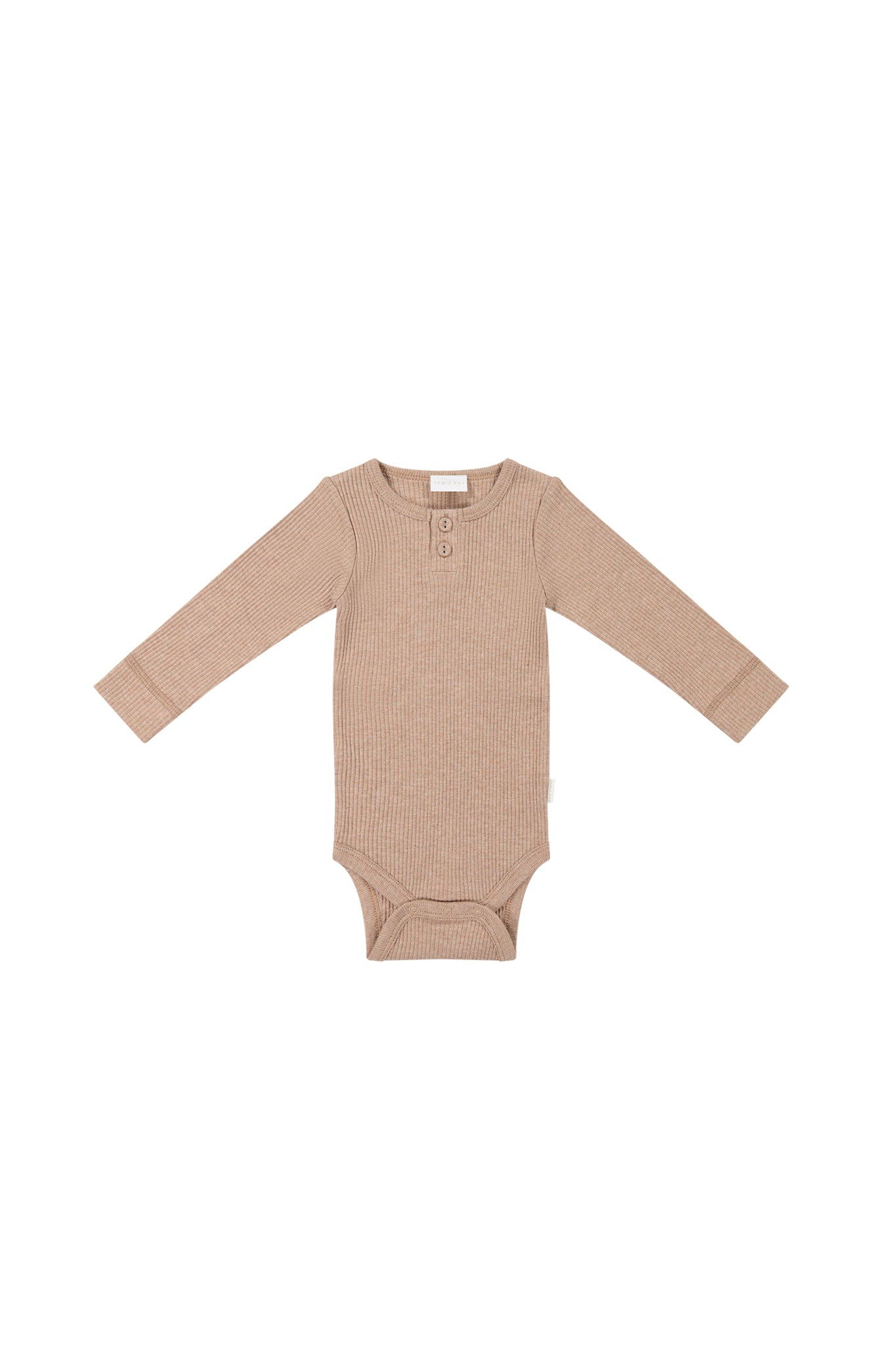 Organic Cotton Modal Long Sleeve Bodysuit - Hazelnut Marle