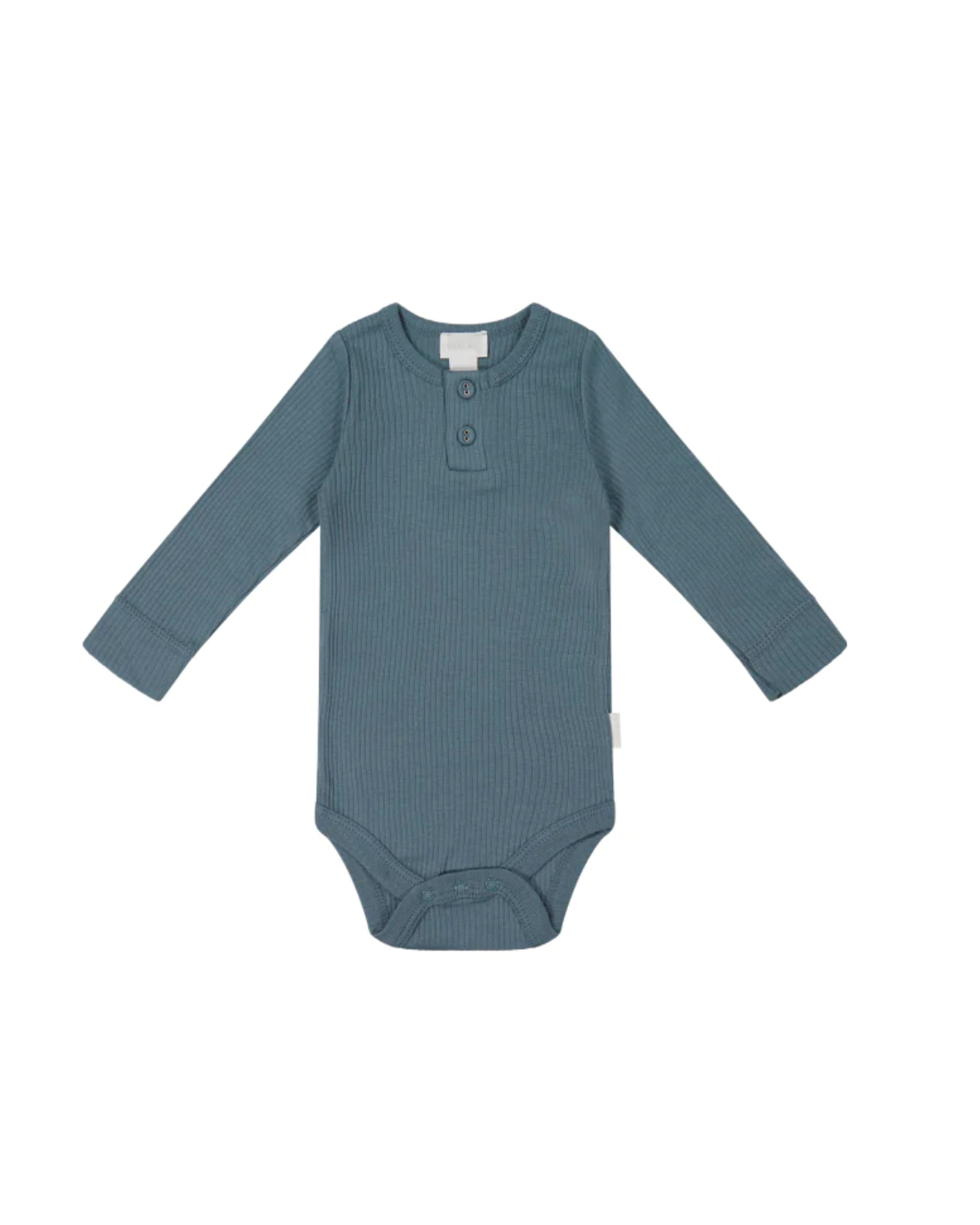 Organic Cotton Modal Long Sleeve Bodysuit - Stormy Night