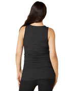 Dressed, looking good, and ready for the day in a cinch. Shirred sides on this classic tank allows for a tailored fit on your bump through every stage of pregnancy and beyond.