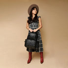 - High quality woven tweed fabric with black vegan leather