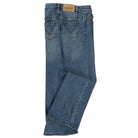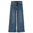 Blue jeans in a bootcut style. These jeans are in a cotton/polyester blend with 2% elastane for comfort and easy movement. They have side pockets, back pockets, have bootcut legs and are in a regular fit. The waistband on the jeans can be adjusted with an inner elastic so they fit all children perfectly. Sizes 92-134 have a snap closure to make them easy to pull on and off.Sizes 140-176 have a regular jeans button.