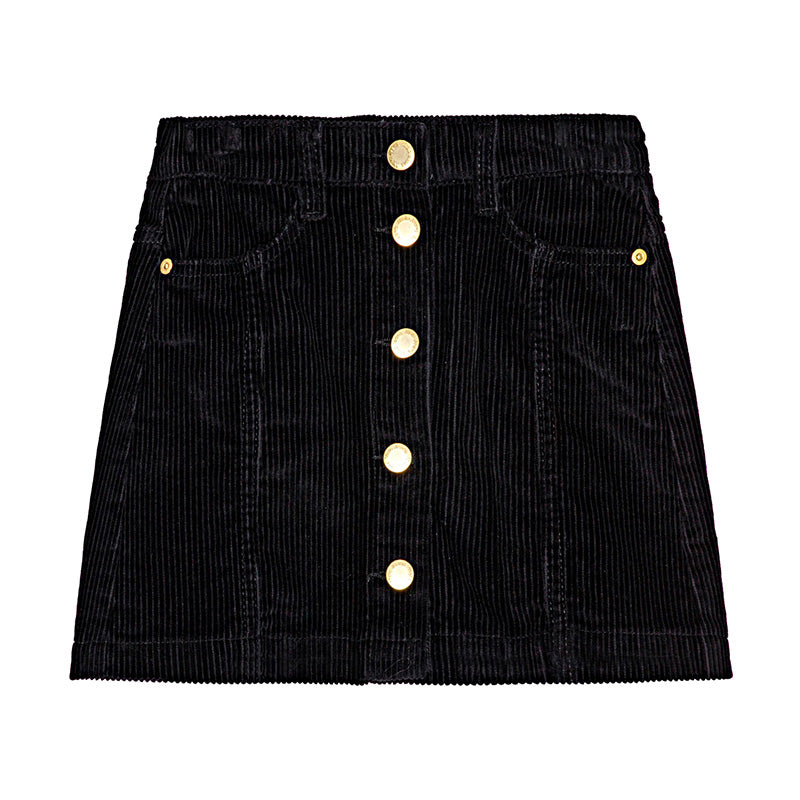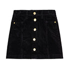 Bera is a velvet skirt in black with a button closure on the front. It has belt loops and pockets on the front.
