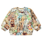 Multi-colored sweatshirt in organic cotton jersey for the little ones with raglan sleeves, ribbed hem at the waist and sleeves, and a round neckline with two poppers at the back for easy dressing and undressing. The sweatshirt has a fun all-over print of stuffed animals and a brushed inner face, making it soft and warm to wear.