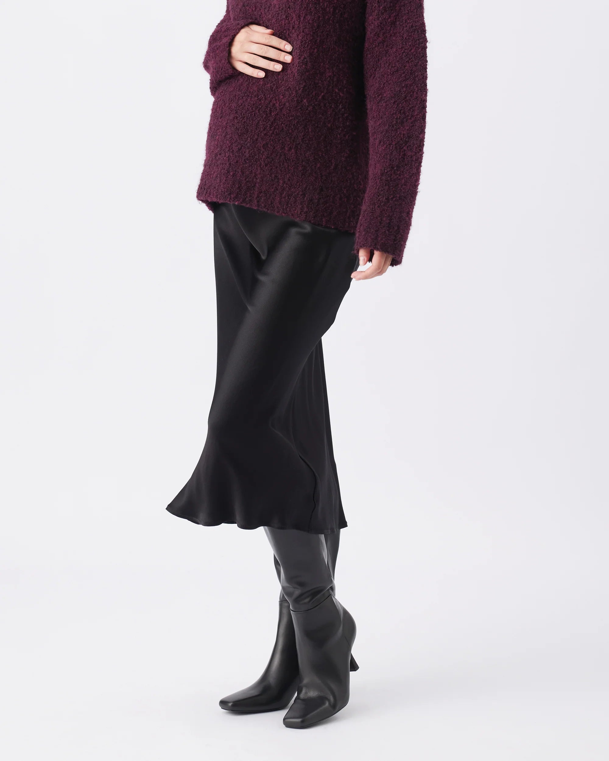 Made from a luxurious woven viscose satin, the Crystal Satin Skirt with its bias cut and semi-fitted silhouette ensure a graceful flow with every step. The fabric and the elastic band waist make this pull on skirt extremely comfortable to wear, and the shape is extremely flattering as it skims the hips and gently flares out to a flowing hem. It has movement whilst still giving shape, and doesn't cling. A piece that is easy to dress up or down for the office or the weekend, and can be transformed by the accessories you pair it with.