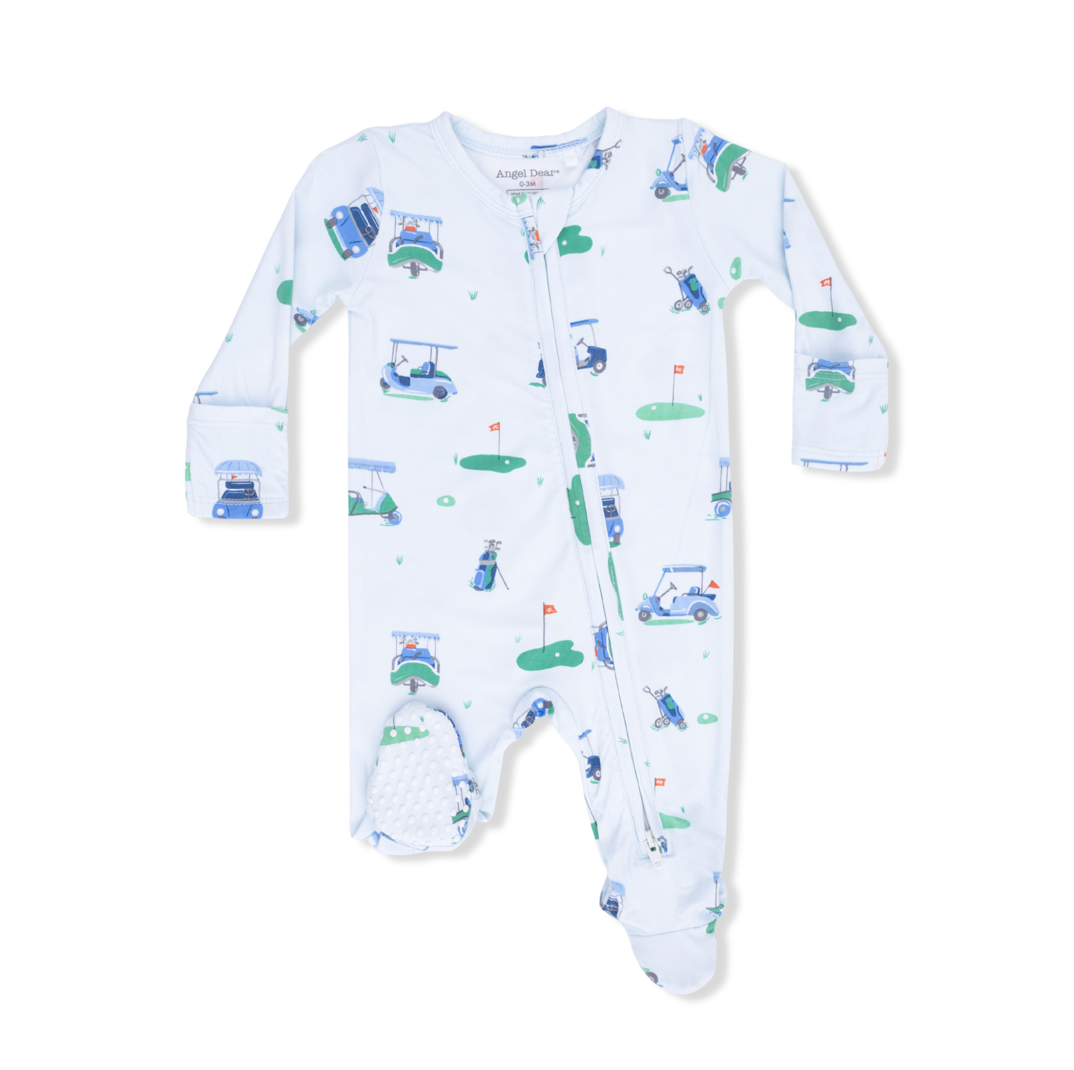 2 Way Zipper Footie - Vintage Golf Carts Blue