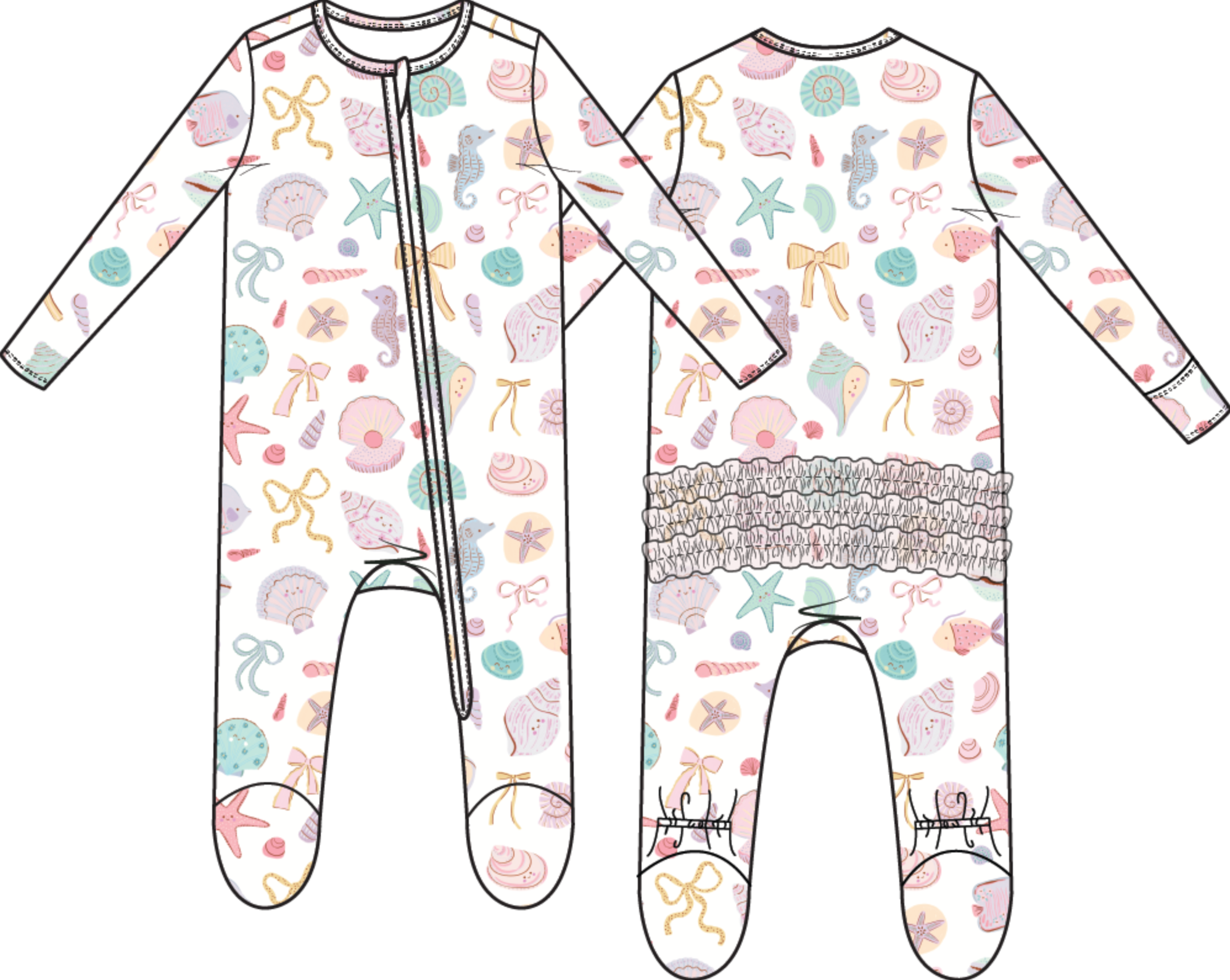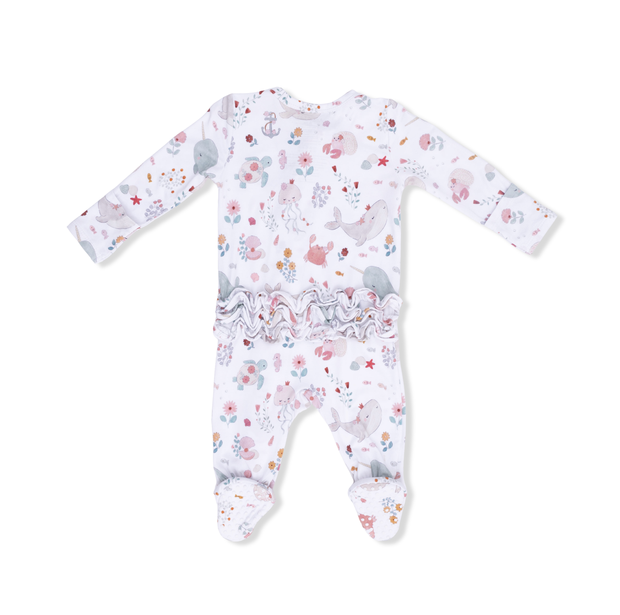 2 Way Ruffle Back Zipper Footie - Garden Sea Creatures
