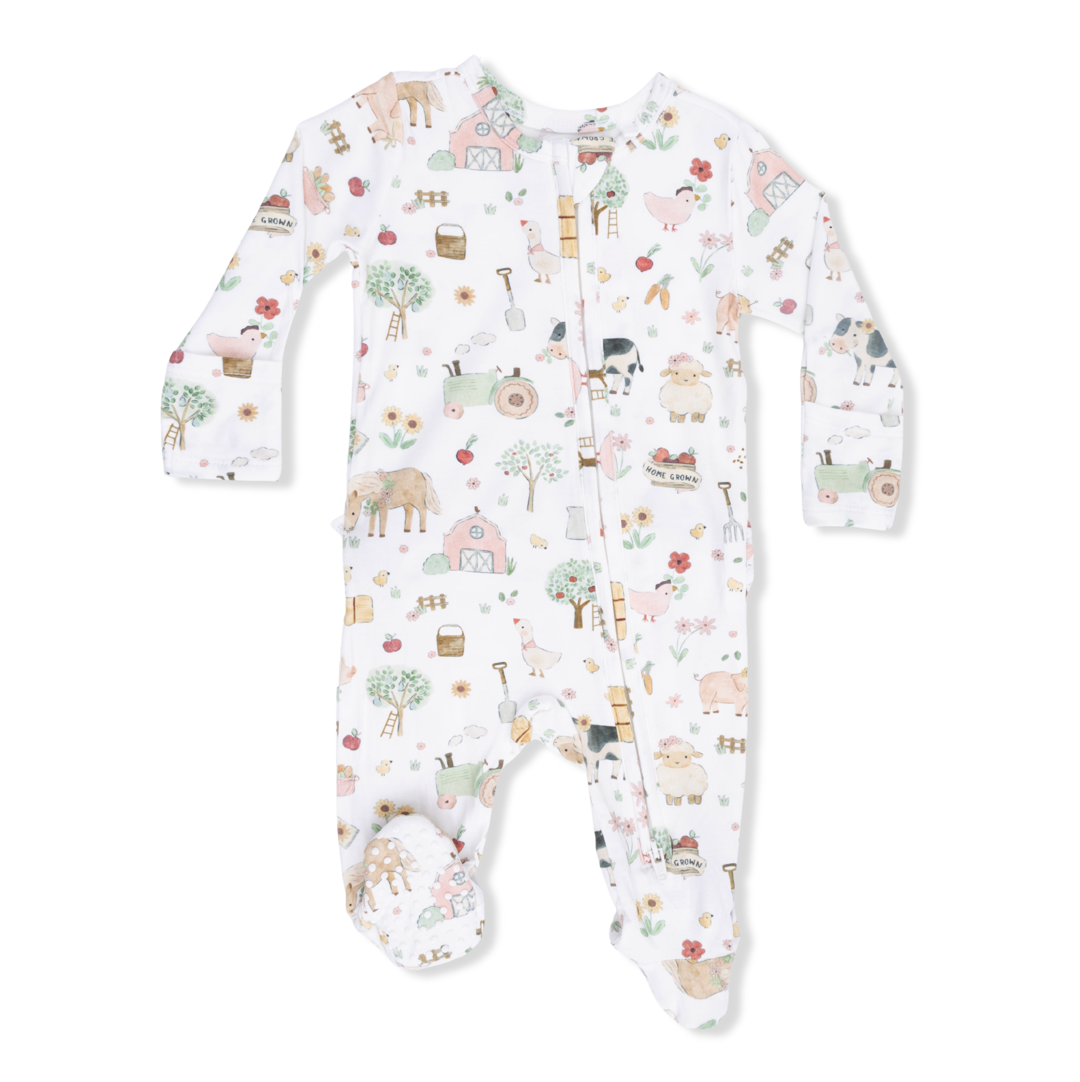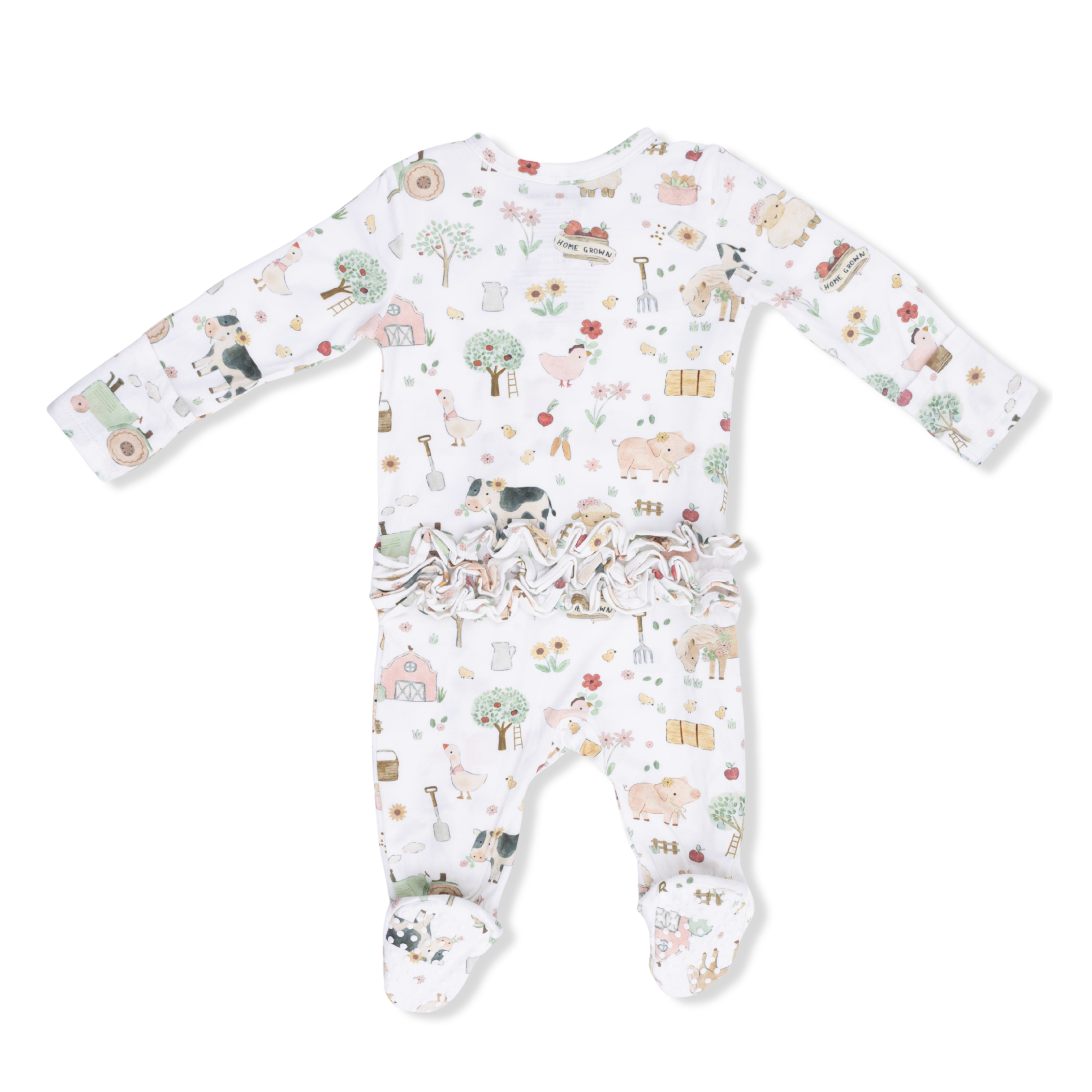 2 Way Ruffle Back Zipper Footie - Cute Farm Animals Pink