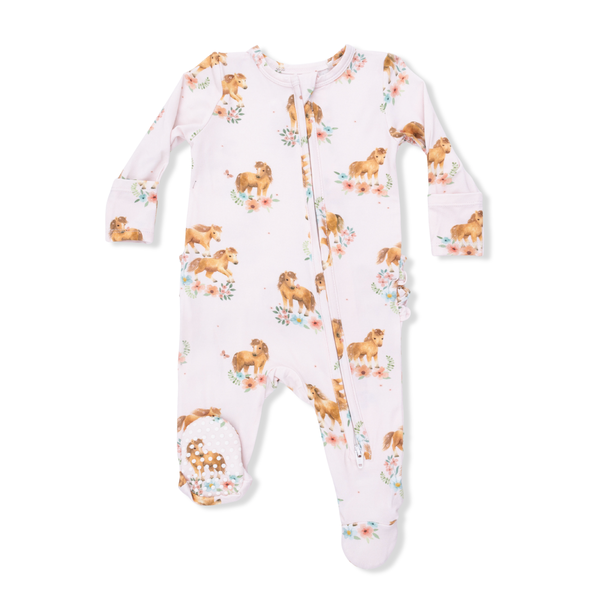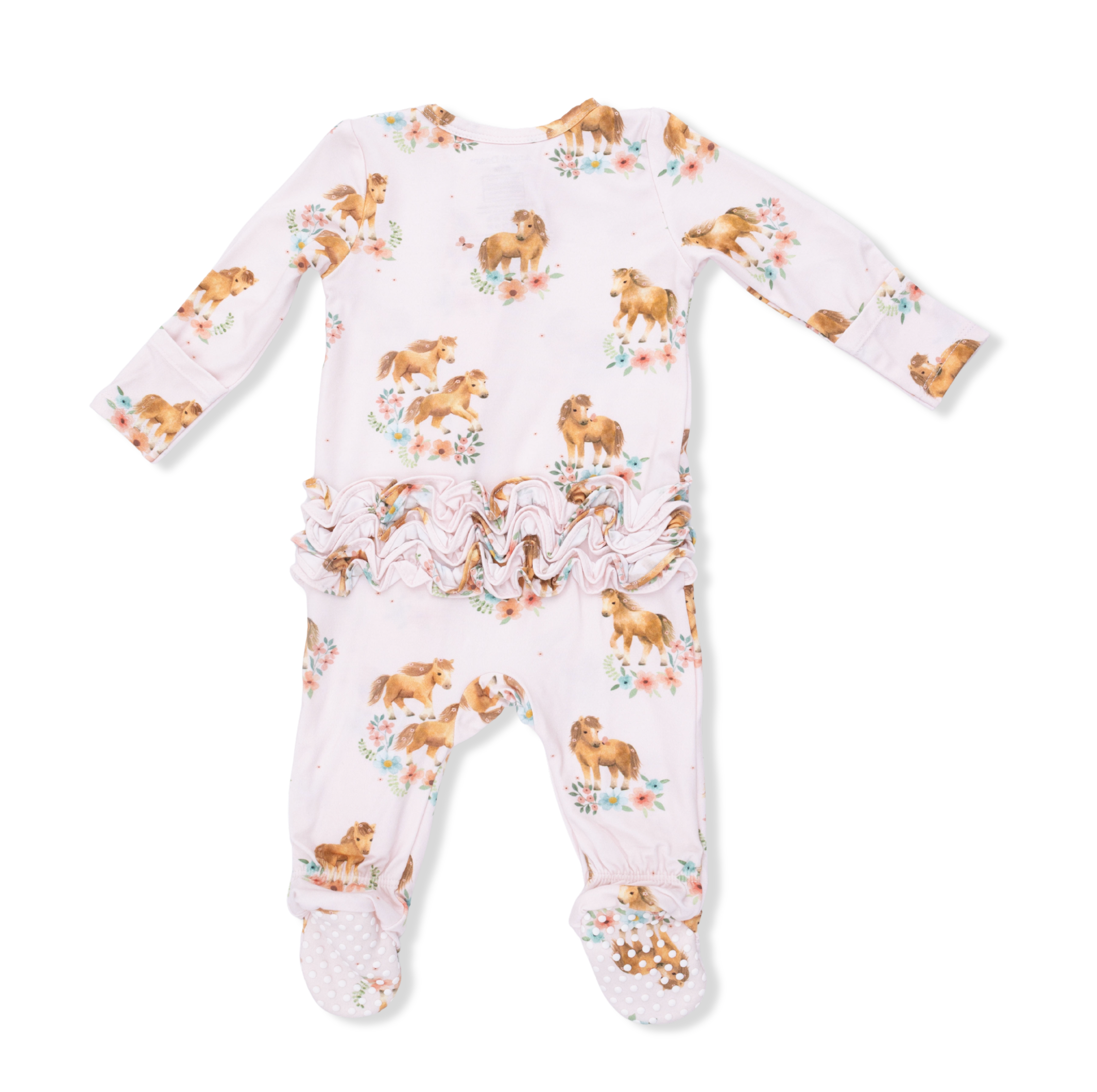 2 Way Ruffle Back Zipper Footie - Pink Ponies
