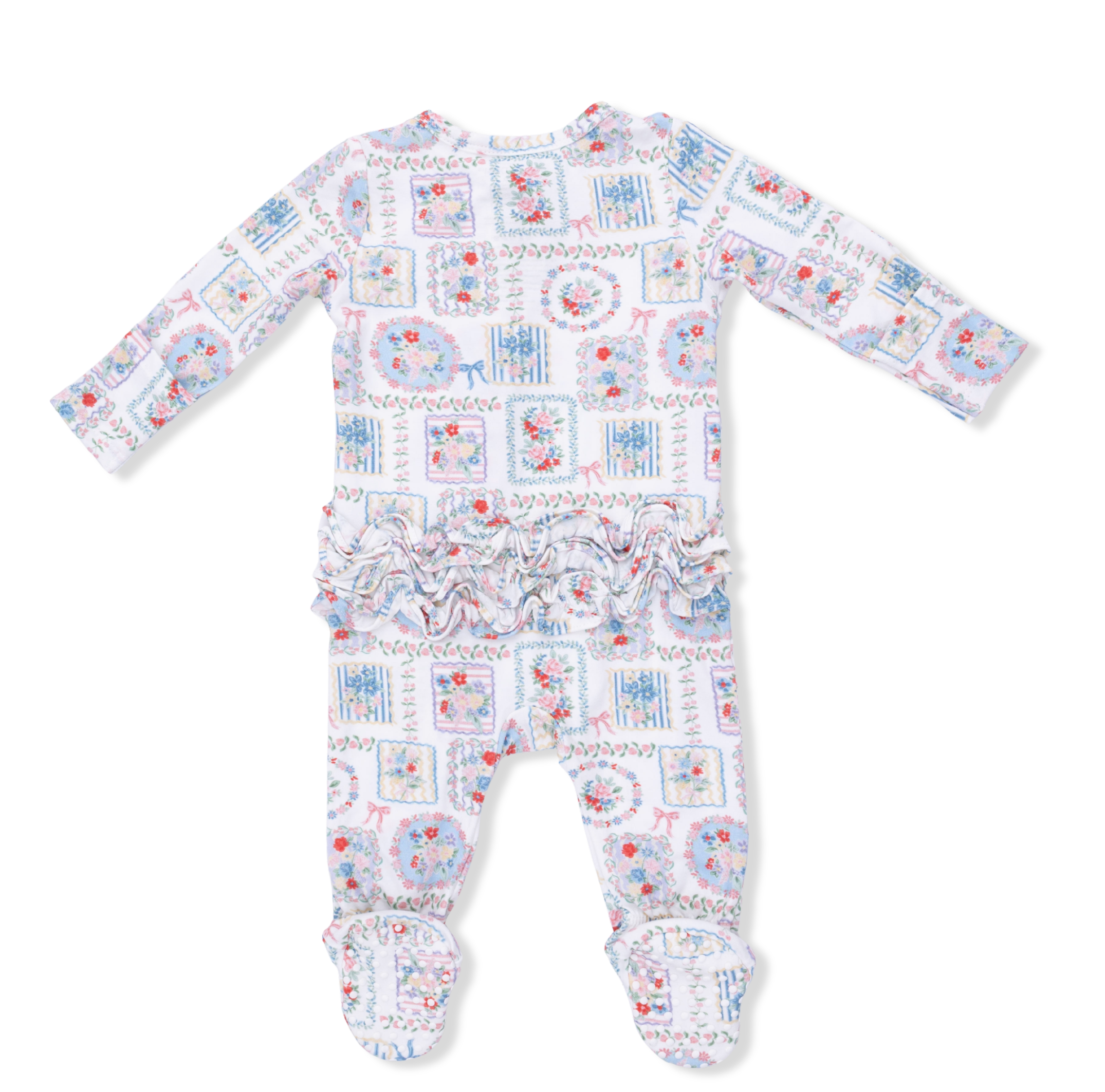 2 Way Ruffle Back Zipper Footie - Julep's Floral Patchwork