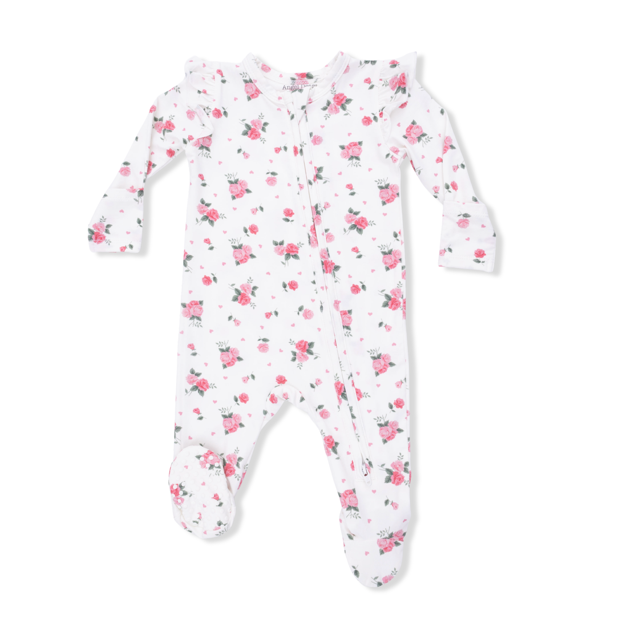 2 Way Ruffle Back Zipper Footie - Cute Little Roses