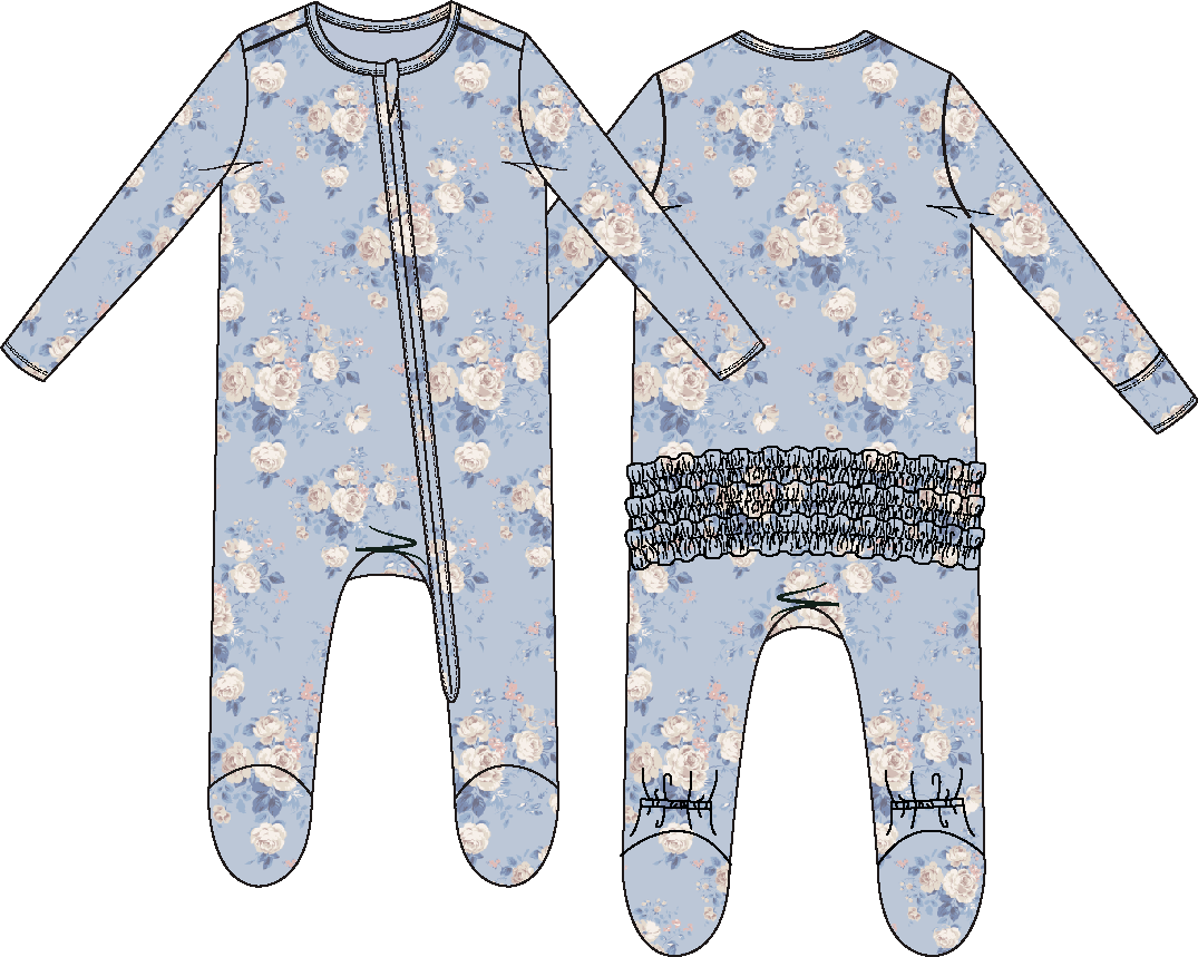 2 Way Ruffle Back Zipper Footie - Edith's Rose Garden
