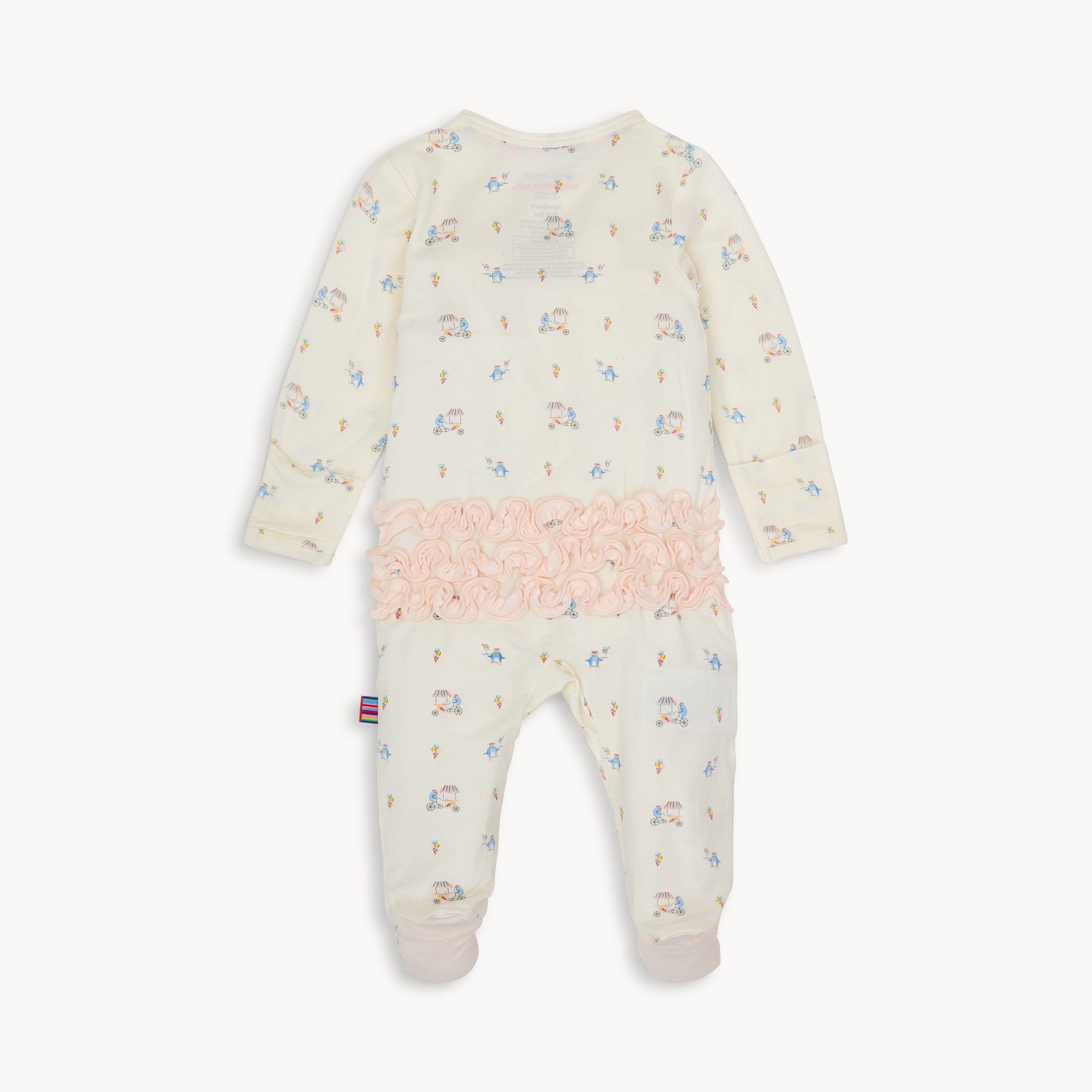 - Starting at 3-6M sizes, footies open neck to crotch with a roomy seat for easy changes