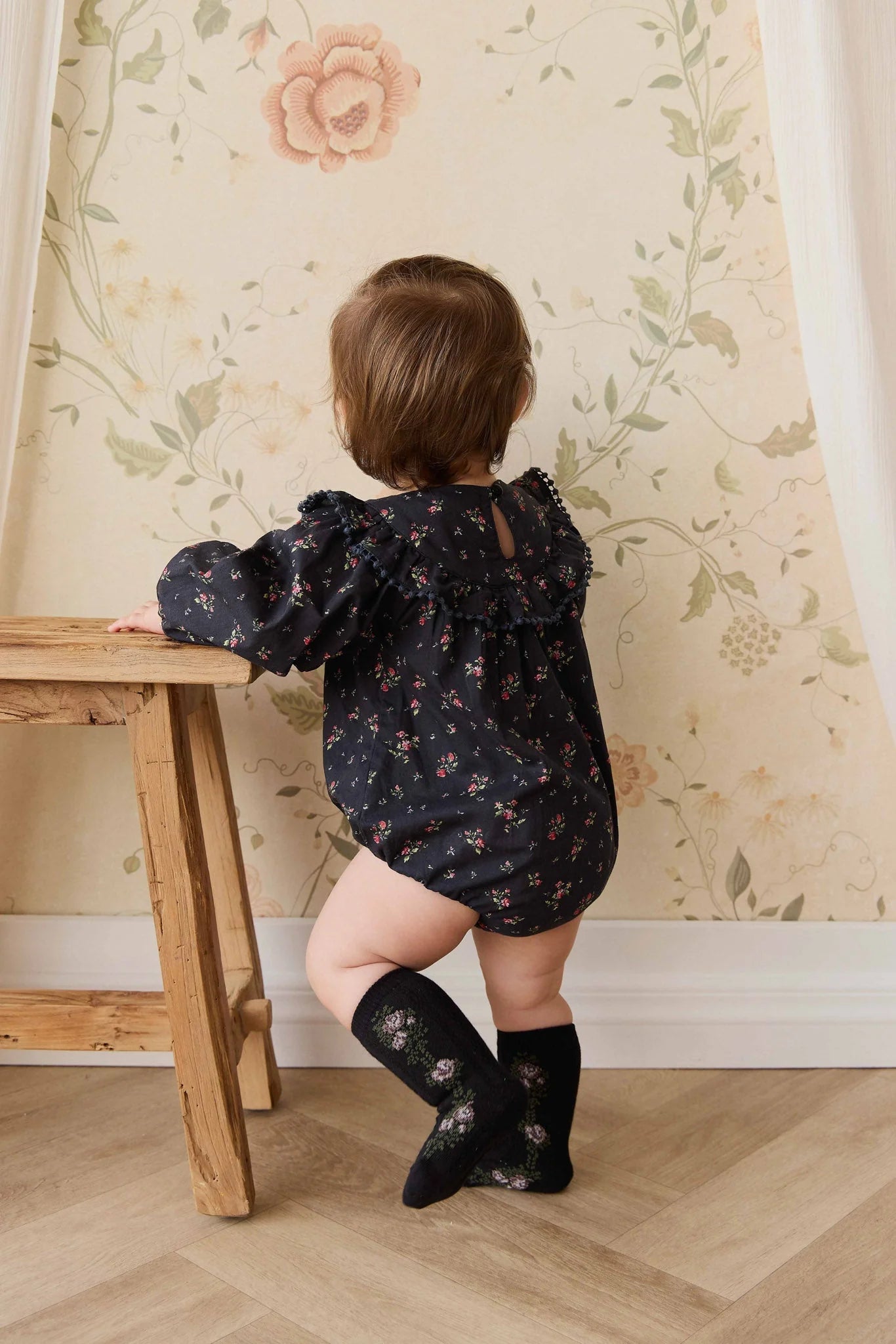 Tasha Floral Jacquard Socks - Black Beauty