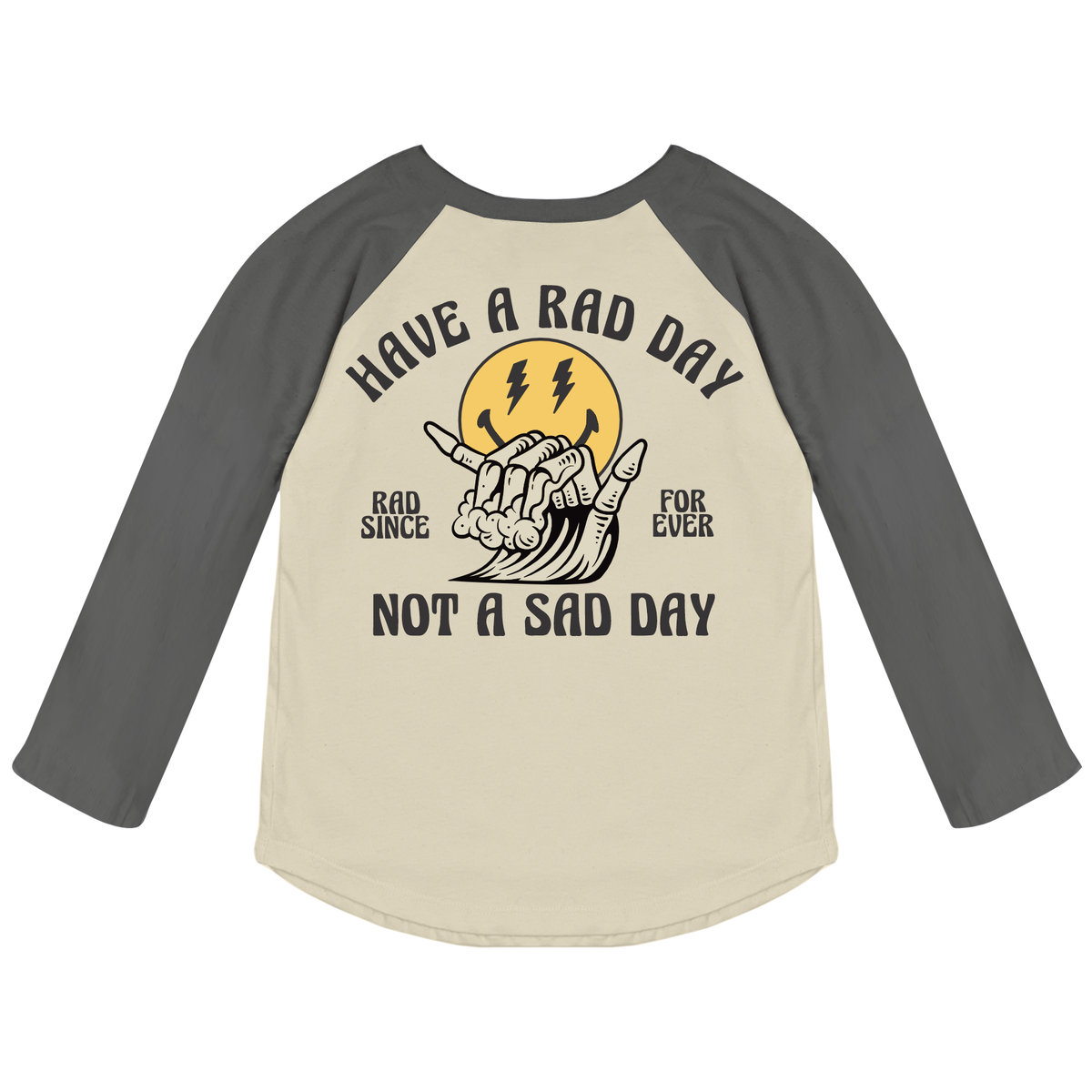 No Sad Days Raglan Long Sleeve Tee - Cinder/Vintage Black