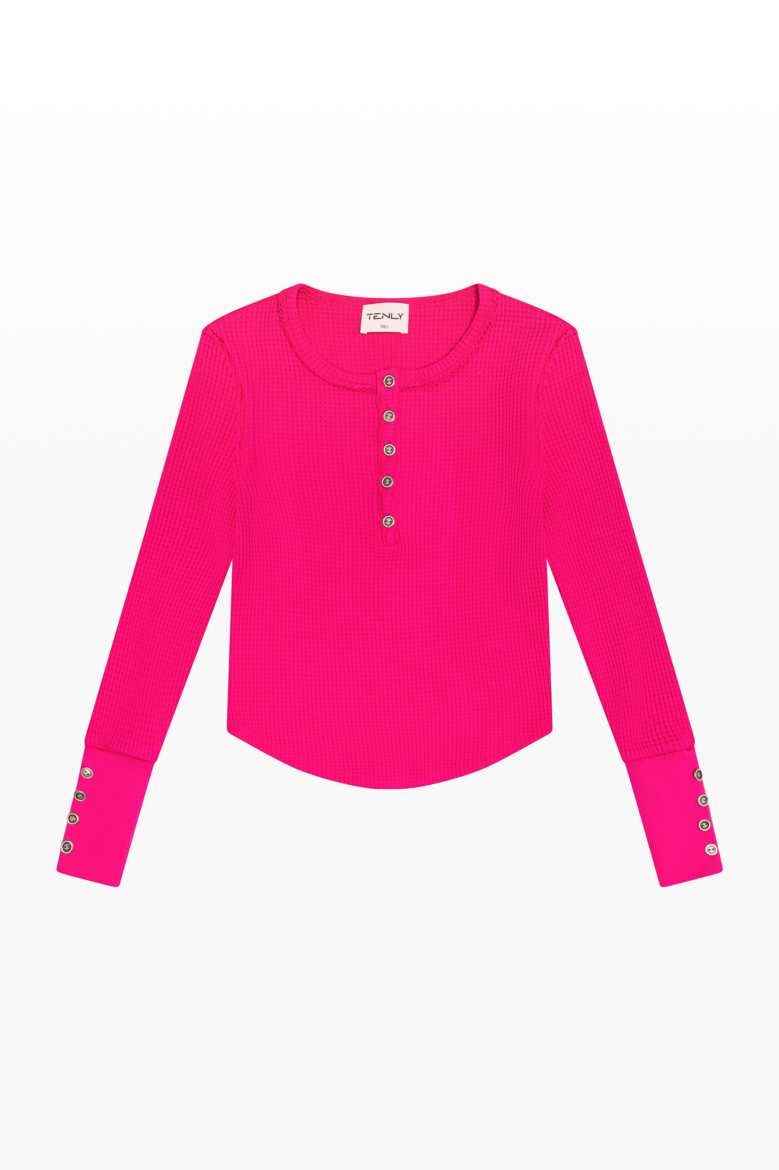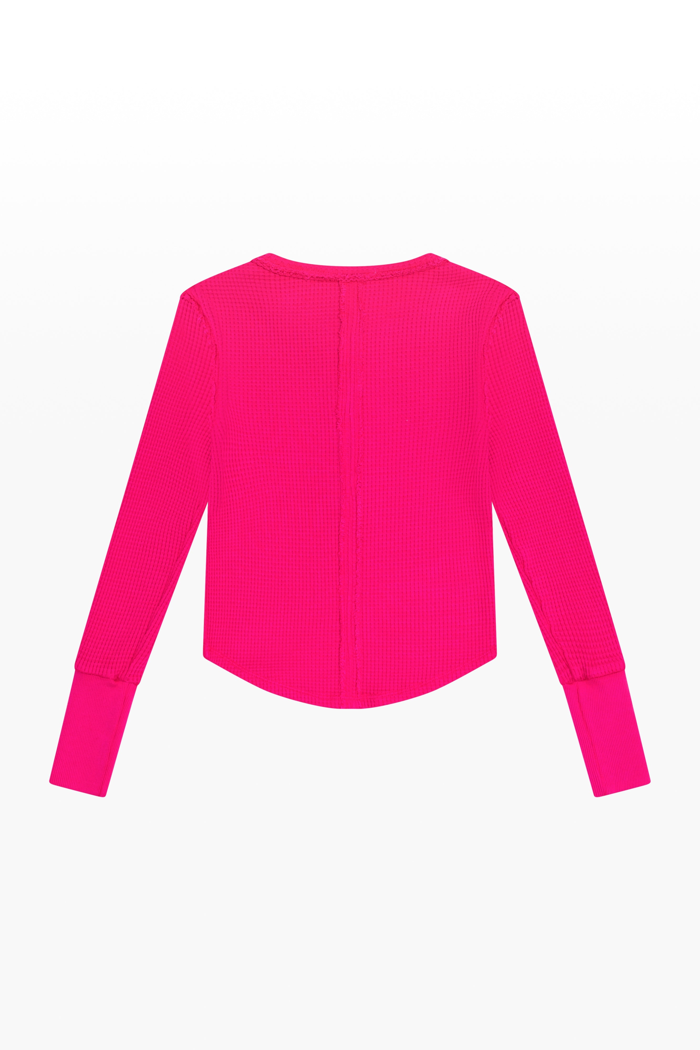 Waffle Longsleeve Scoop Neck Button Henly - Cerise