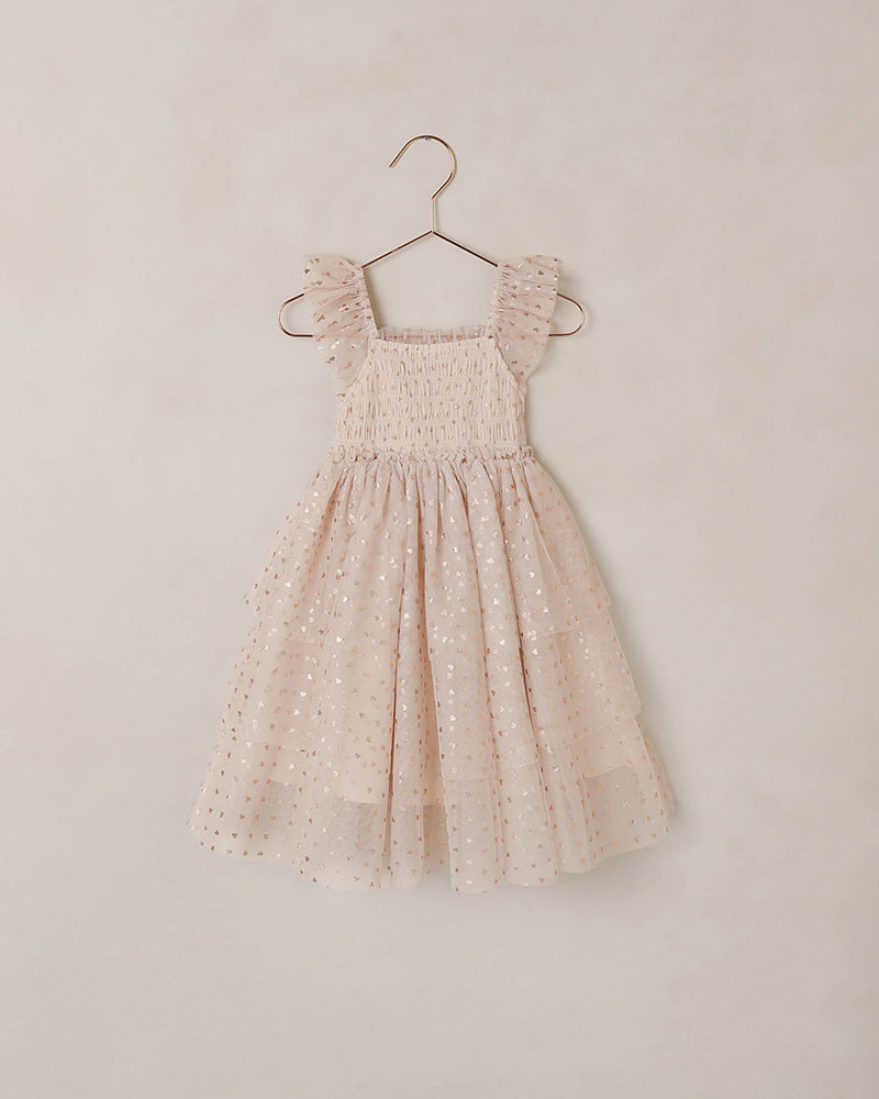 Flutter sleeves, a smocked bodice, and tiered layers, make this sweet tulle style ready to twirl. Valentina is the perfect look for your little valentine.